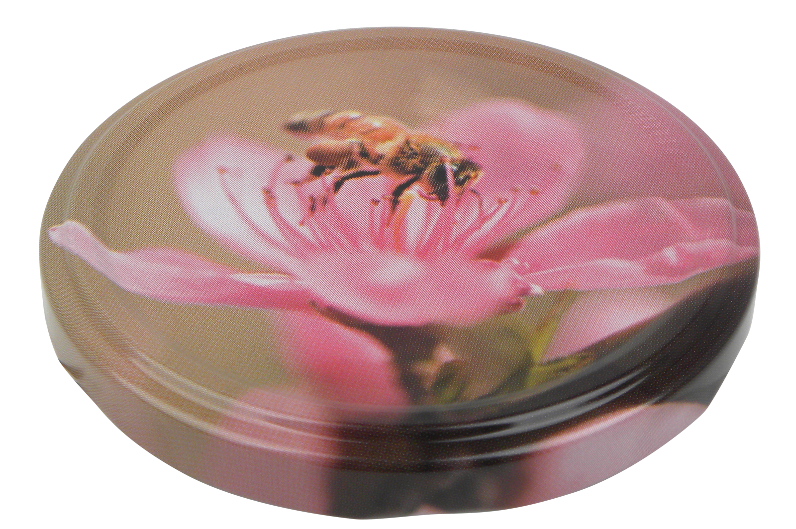 • Deckel mit Fotomotiv ″Biene & rosa Blüte″