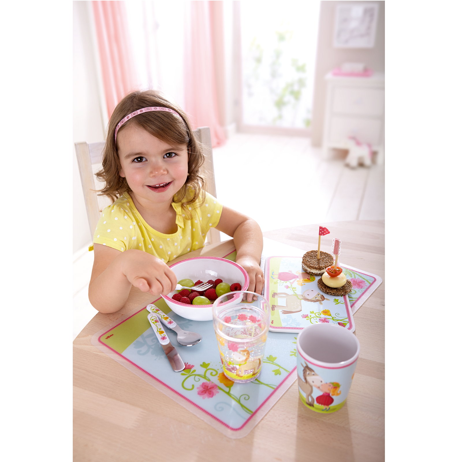 Kinderschüssel Ø 14,5 cm/ Höhe ca 5 cm, aus Melamin für Kinder ab 6 Monaten. Rutschfest dank Gummiring! Dekor Vicki und Pirli.Damit wird jede Mahlzeit zum Vergnügen. Ist Schüssel einmal leer gegessen, lächeln den Kindern die beiden fröhlichen Freunde vom Schüsselboden entgegen. Danach geht's ab in die Spülmaschine, damit die pflegeleichte Kinderschüssel aus robustem Melamin schnell wieder bereit für die nächste Mahlzeit ist. Der hohe Rand erleichtert das Löffeln und ein Gummiring sorgt dafür, dass sie gut am Tisch steht und nicht verrutscht. So unterstützen sie Kinder bei ersten Löffel-Experimenten. Die Melamin-Schüssel Vicki & Pirli ist ein liebevoll gestaltetes Kindergeschirr aus der HABA-Serie Vicky & Pirli für Kinder ab 6 Monaten.HinweiseMelamingeschirr ist ein Essgeschirr, kein Kochgeschirr und sollte in Verbindung mit Lebensmitteln nur Temperaturen bis max. 70°C ausgesetzt werden.Nicht geeignet zum Speisen erwärmen in der Mikrowelle und dem Backofen!Melamingeschirr ist:• äußerst bruchsicher & stabil• besonders leicht• praktisch für Küche, Haushalt und Outdoor-Aktivitäten• spülmaschinengeeignet bis 50°C• bei richtiger Handhabung (hitzebeständig bis 70°C) gesundheitlich unbedenklichKurz erklärt:Das liebevoll gestaltete Melamin-Geschirr bringt beim Auslöffeln die lustigen Freunde Vicki und Esel Pirli zum VorscheinDie Kinderschüssel aus Melamin ist robust und pflegeleicht und ideal für jeden TagDer hohe Schüsselrand erleichtert den Kleinsten das erste LöffelnDank Gummiring an der Unterseite steht die Schüssel sicher am Tisch, ohne zu verrutschenDas Kindergeschirr ist spülmaschinengeeignet und damit perfekt für den bewegten Kinderalltag