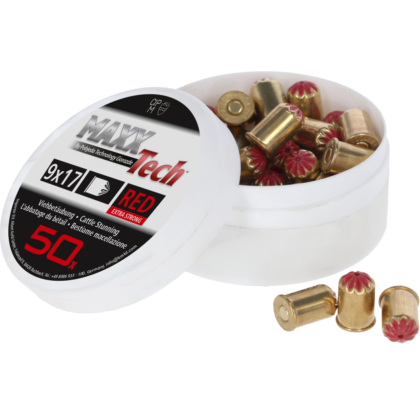 Passend zu Bolzenschussapparaten (Betäubungsgeräten). Kaliber 9 x 17 mm. Packung 50 Stück. Farbe rot (sehr starke Ladungsstärke)