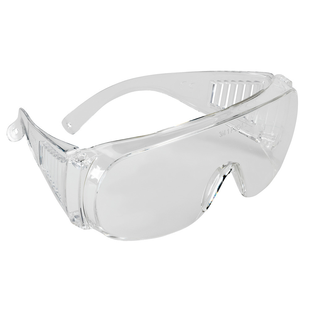 Klassische Schutzbrille aus Polycarbonat. Durch die große Brillenform auch für Brillenträger geeignet. Die breiten Bügel bieten guten seitlichen Partikelschutz bei hohem Tragekomfort.