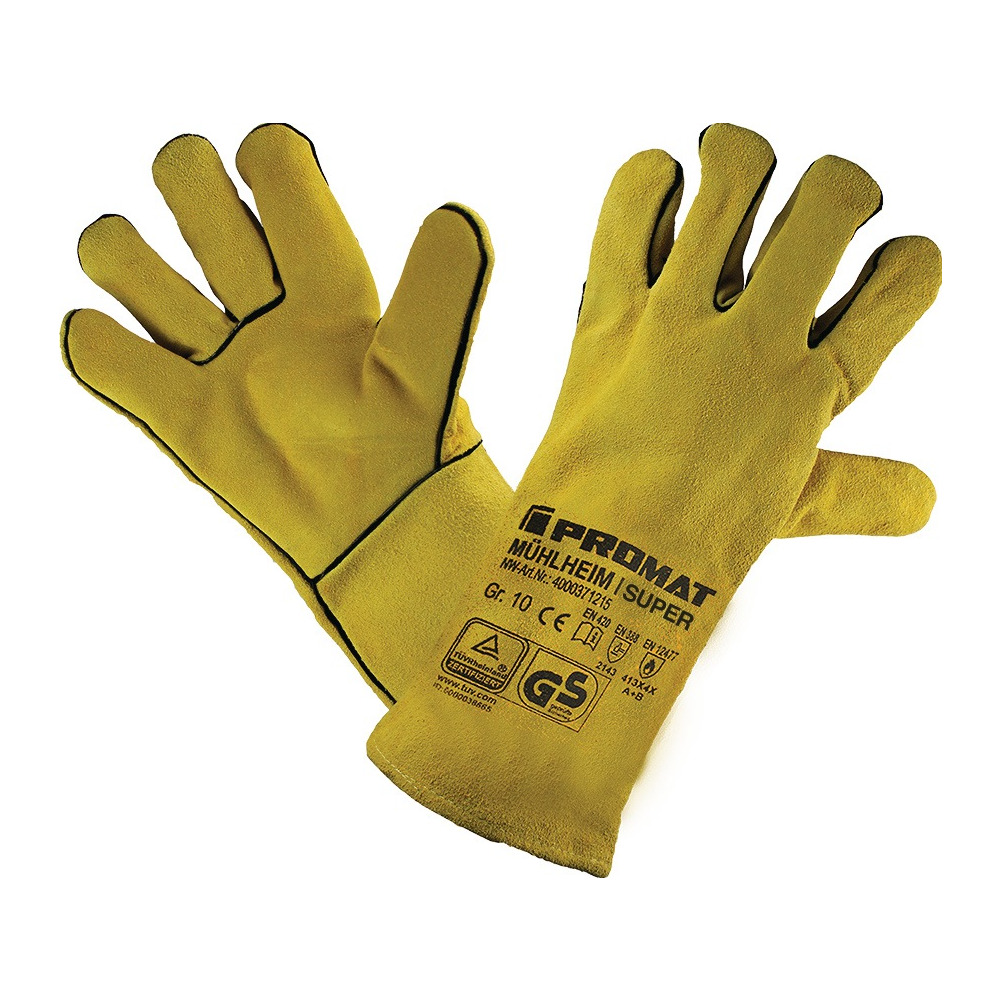 PROMAT Schweißerhandschuhe Mühlheim I Super Größe 10 gelb Rindspaltleder EN 388, EN 12477 Kategorie II