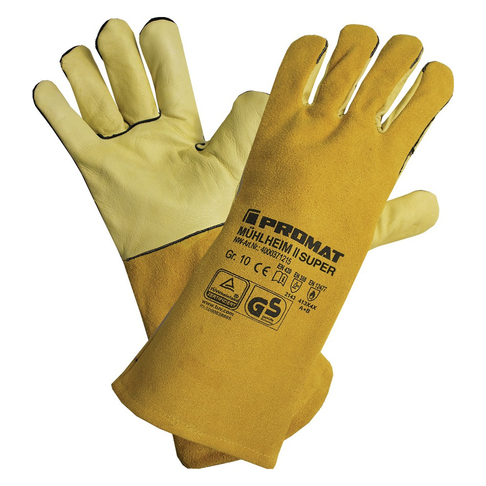 Produktinformationen "Schweißerhandschuhe Mühlheim II Super Größe 10 gelb Rindnarben-/Spaltleder EN 388, EN 12477 Kategorie II"