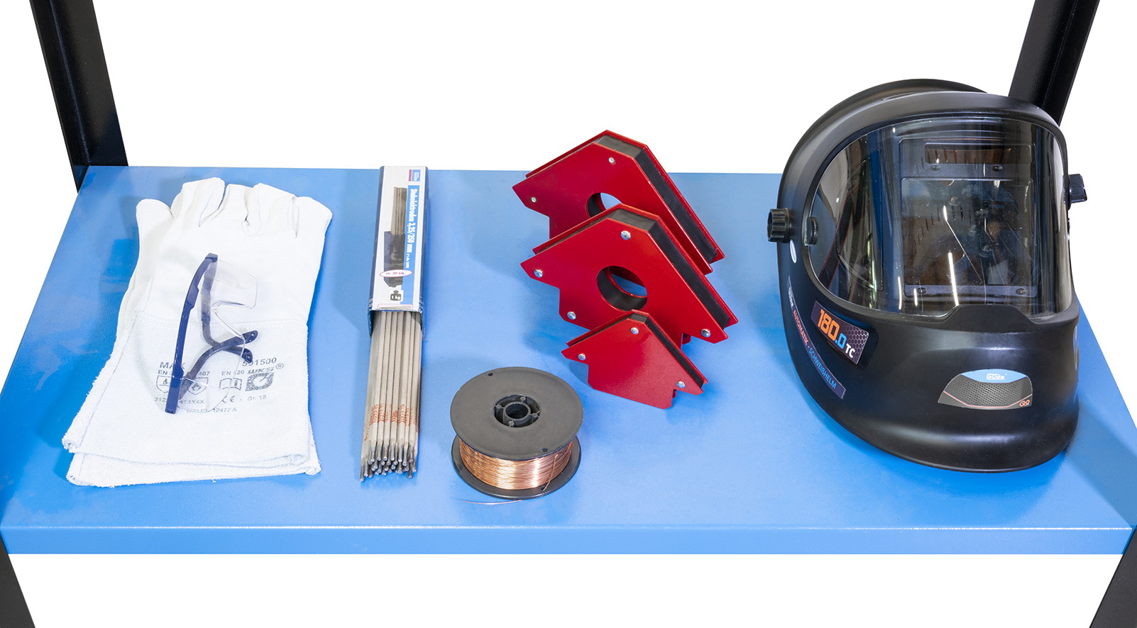 Preiswerter lasergeschnittener Schweiß/Arbeitstisch (verzinkt) mit 300 kg Tragkraft.Der Schweißtisch MST 915 plus ist ein praktischer und preiswerter Arbeitstisch, der speziell für Schweißarbeiten entwickelt wurde. Der Tisch ist aus verzinktem Stahl gefertigt und verfügt über eine Lochung mit einem Durchmesser von 16 mm. Diese Lochung ermöglicht die einfache Fixierung von Werkstücken mit Hilfe von optionalen Schweißklemmen, was eine präzise und stabile Positionierung während des Schweißens gewährleistet. Zusätzlich gibt es Nuten auf dem Tisch, die es ermöglichen, Winkelschraubstöcke sicher zu befestigen.Der Schweißtisch verfügt über eine seitliche Konsole, auf der das Schweißgerät abgestellt werden kann, um es griffbereit und sicher zu halten. Ein 4-teiliges Schweißmagneten-Set ist ebenfalls im Lieferumfang enthalten, was die Arbeit mit magnetischen Werkstücken erleichtert.Ein großer Vorteil des MST 915 plus ist das serienmäßige Fahrwerk mit gebremsten Lenkrollen. Dadurch kann der Schweißtisch leicht bewegt und transportiert werden, was besonders praktisch ist, wenn der Tisch in verschiedenen Bereichen oder Werkstätten eingesetzt werden soll.Die Abmessungen des Schweißtischs betragen 915 mm in der Länge, 460 mm in der Breite und 880 mm in der Höhe. Der Tisch wird unmontiert geliefert, lässt sich aber einfach zusammenbauen und bietet eine stabile und vielseitige Arbeitsfläche für Schweißarbeiten und andere handwerkliche Tätigkeiten. Mit einer Tragkraft von 300 kg ist der MST 915 plus ein robuster und zuverlässiger Partner für verschiedene Schweißprojekte und Arbeiten in der Werkstatt.Maße: 915x460x880mm LxBxH. Lieferung unmontiert.