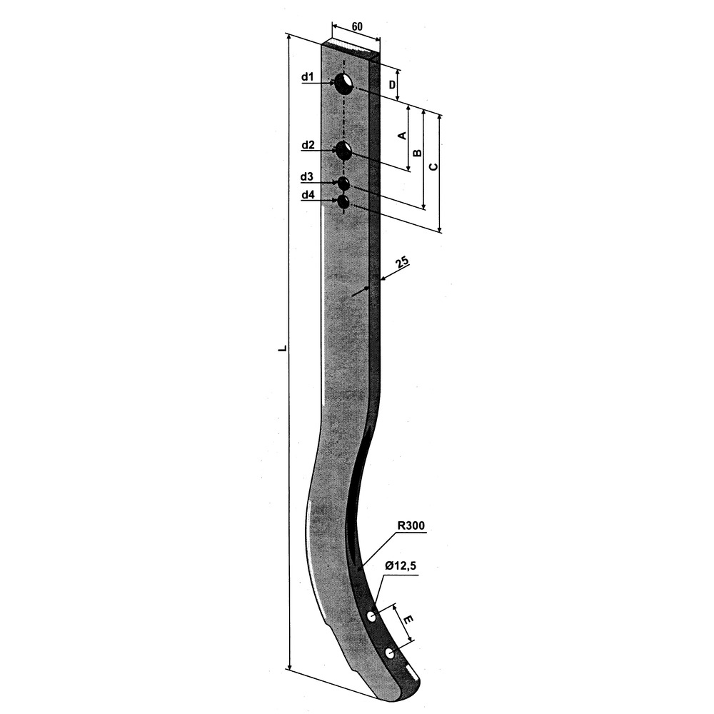 60x25 mm, Radius 300 mm.