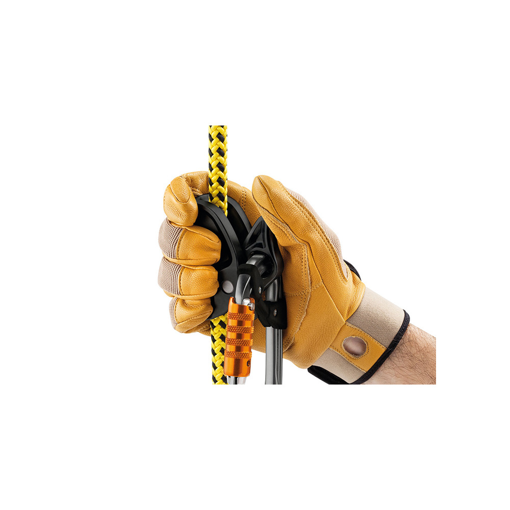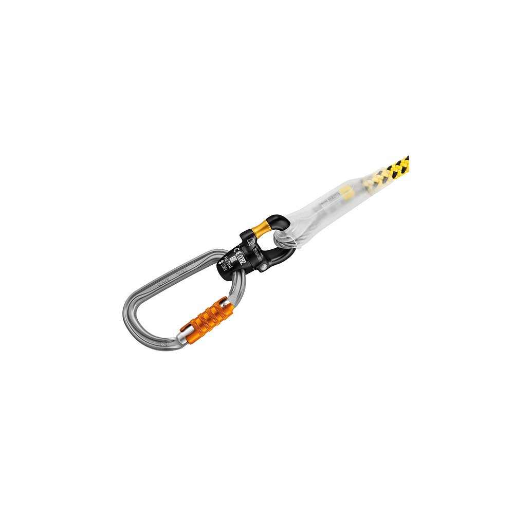Einstellbares Verbindungsmittel mit Stahlseilkern zur Arbeitsplatzpositionierung bei der Baumpflege. Der Stahlseilkern reduziert das Risiko, dass das Verbindungsmittel durchtrennt wird und erleichtert die Fortbewegung am Stamm.Die gelbe Farbe ist gut sichtbar.