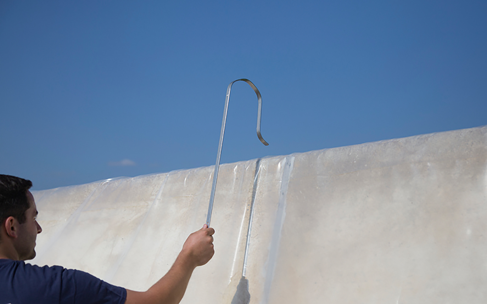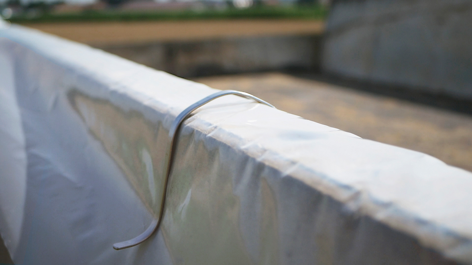 ​Leicht und schnell zu montieren, hält die Folie auch bei der Futterentnahme an der Wand.