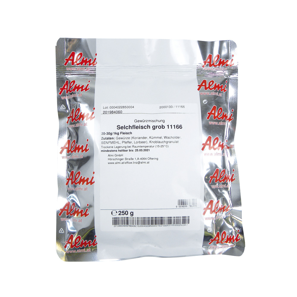 250 g, für ca. 10 kg Fleisch. Inhaltsstoffe: Gewürze: Koriander, Kümmel, Wacholder, Senf, Pfeffer, Lorbeer und Knoblauch
