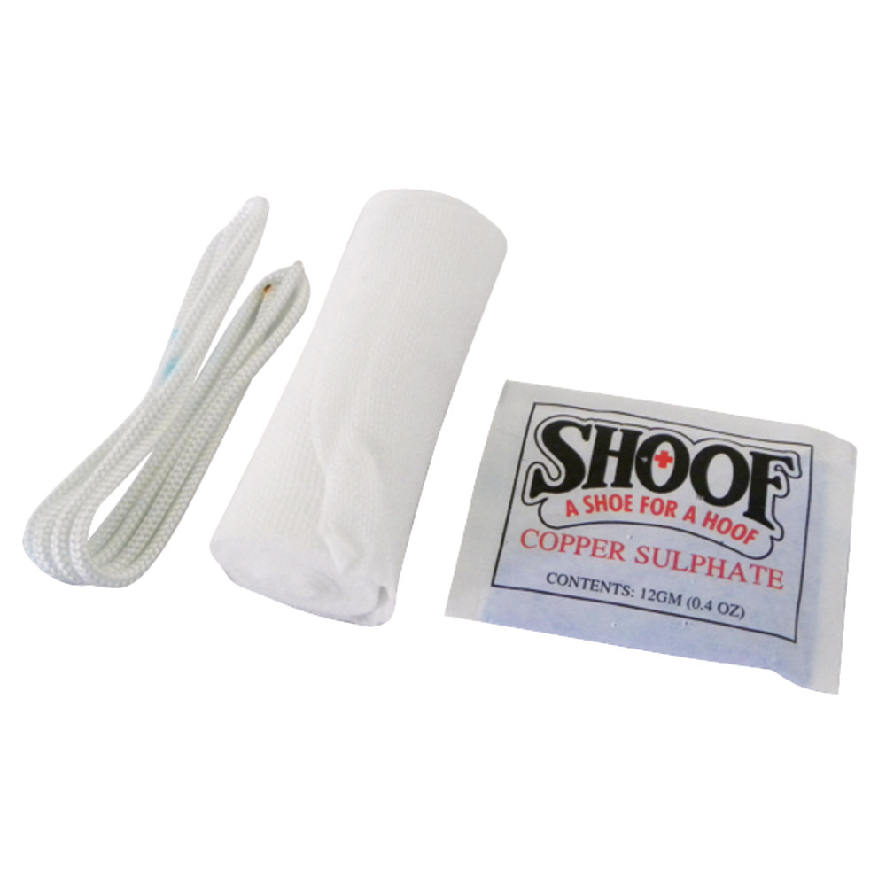 Gazebinde, Kupfersulfatbeutel und Schnürband.