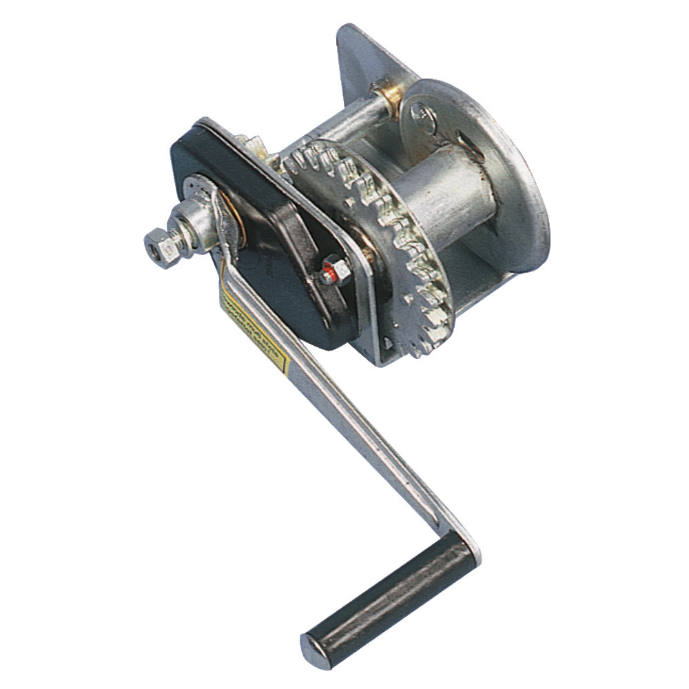Komplett verzinkt, mit automatischem Bremsmechanismus, mit amtlichem Prüfzeichen der Berufsgenossenschaften ausgezeichnet. Mit geringem Kraftaufwand leicht zu bedienen durch entsprechend gewählte Getriebe. Ohne Seil und Haken.