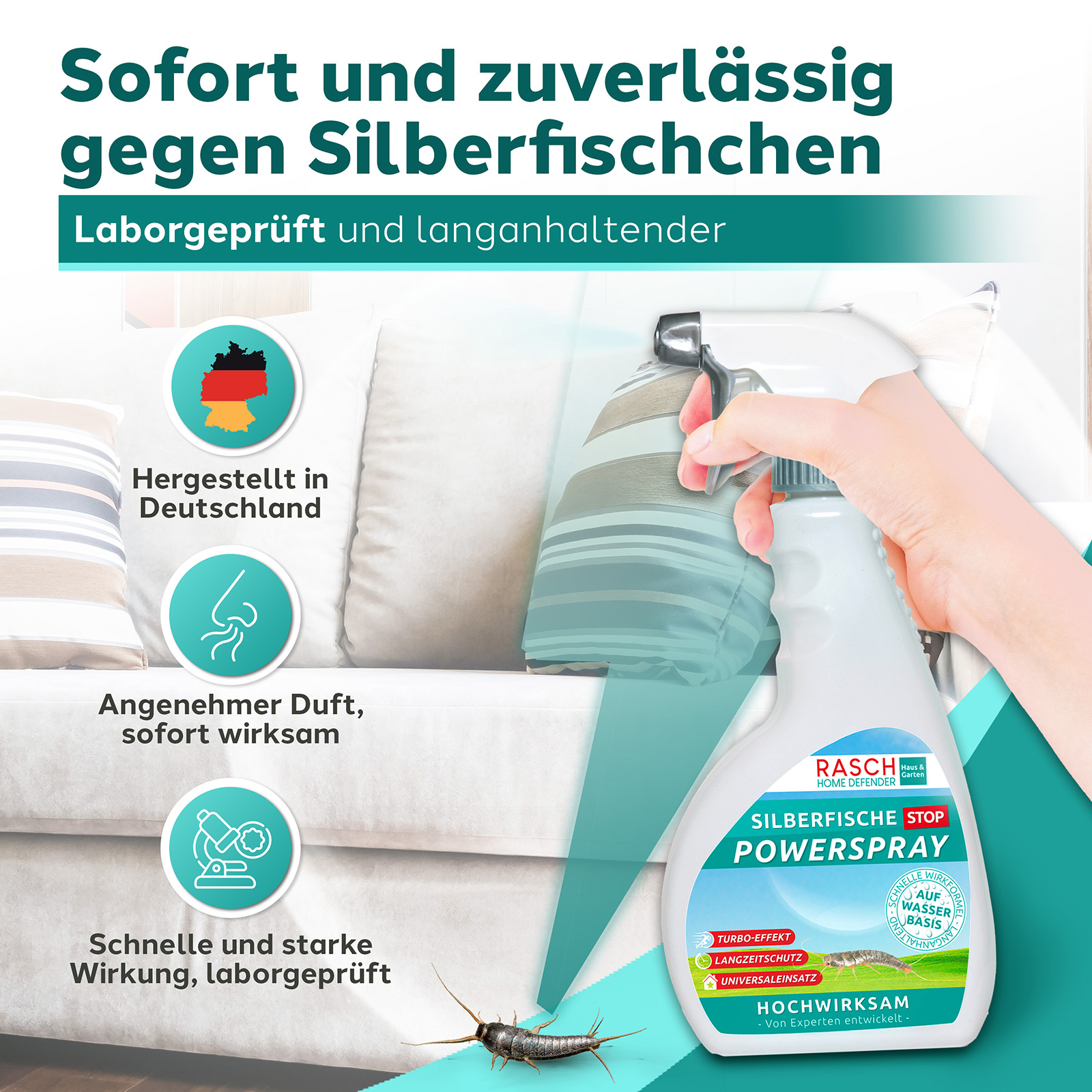 Bequeme und effektive Bekämpfung von Silberfischen im Innenbereich.Lange Wirksamkeit von 4-6 Wochen.Sprayflasche 500 mlBiozidprodukte vorsichtig verwenden.Vor Gebrauch stets Etikett und Produktinformationen lesen.BauA-Reg.-Nr.: N-115085.