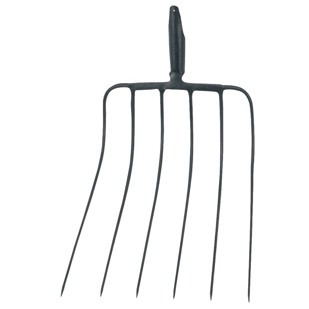 Ohne Stiel, mit Federtülle Ø 37 mm. Mit 6 Zinken, LxB 43x40 cm