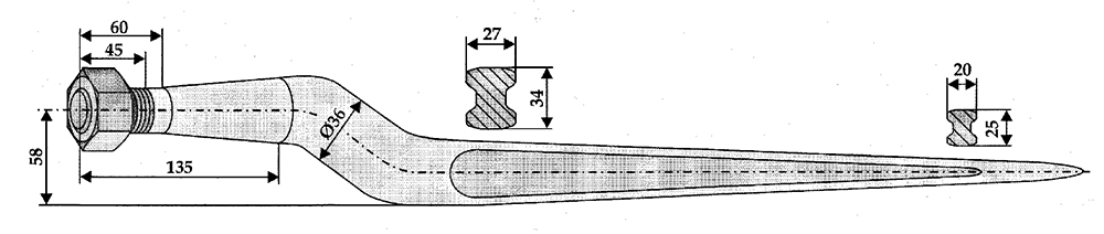 Die Siloentnahmezinken werden aus Federstahl 55Si8 und C45 und mit Qualitätsgarantie gefertigt. Alle Zinken werden mit konischer Mutter ausgeliefert.