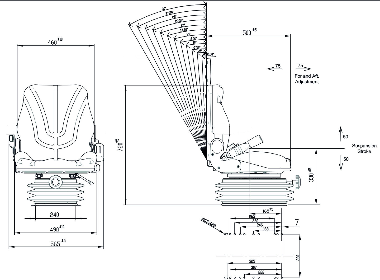 • Rückenlehnenverstellung: (nach vorne klappbar)