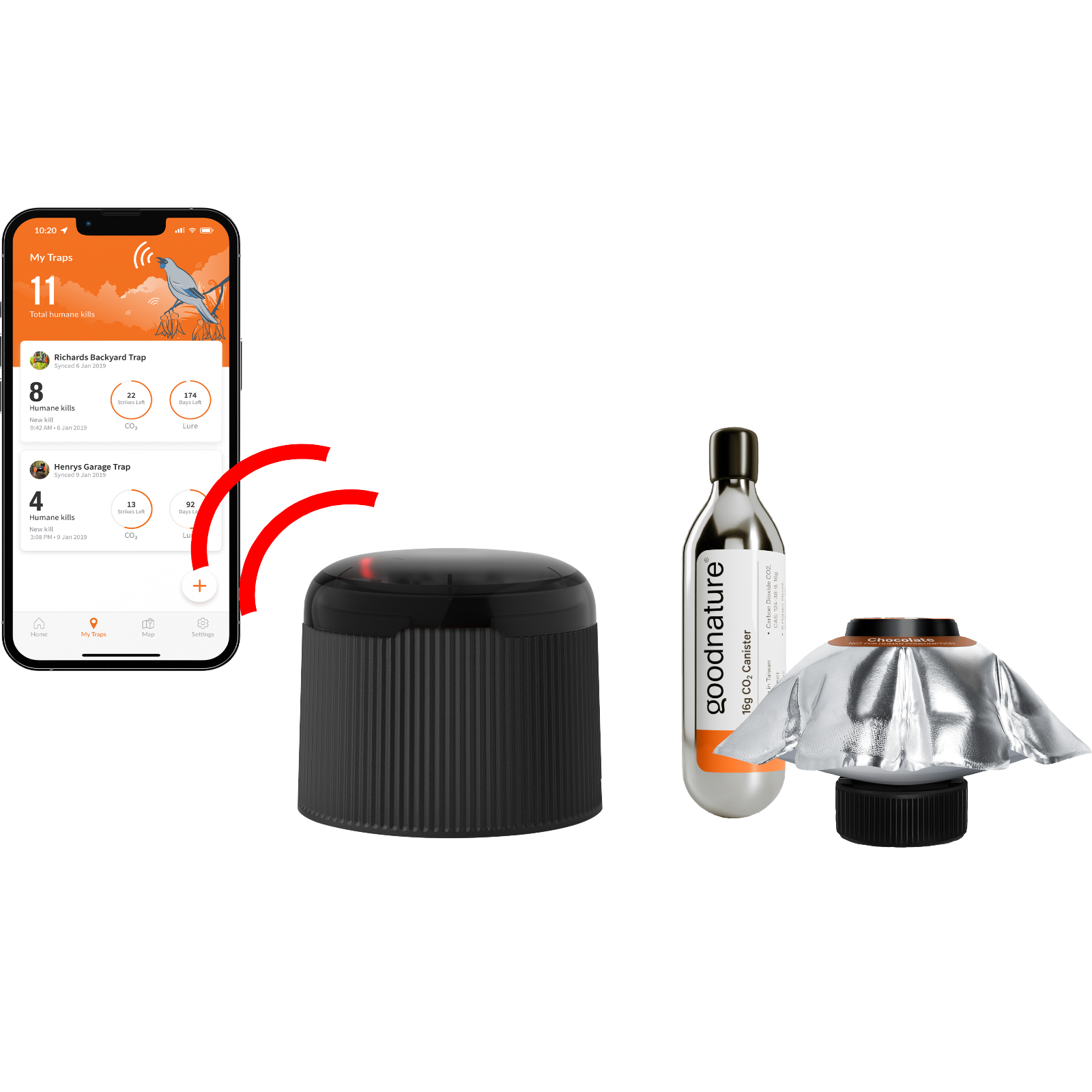 Mit diesem Paket verbinden Sie Ihre Goodnature-Falle über Bluetooth mit Ihrem Smartphone.