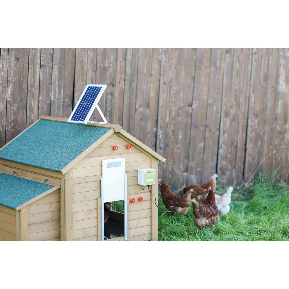 Machen Sie Ihre automatische Hühnertürsteuerung (Art. 105323) komplett energieautark – nie wieder Batterien wechseln