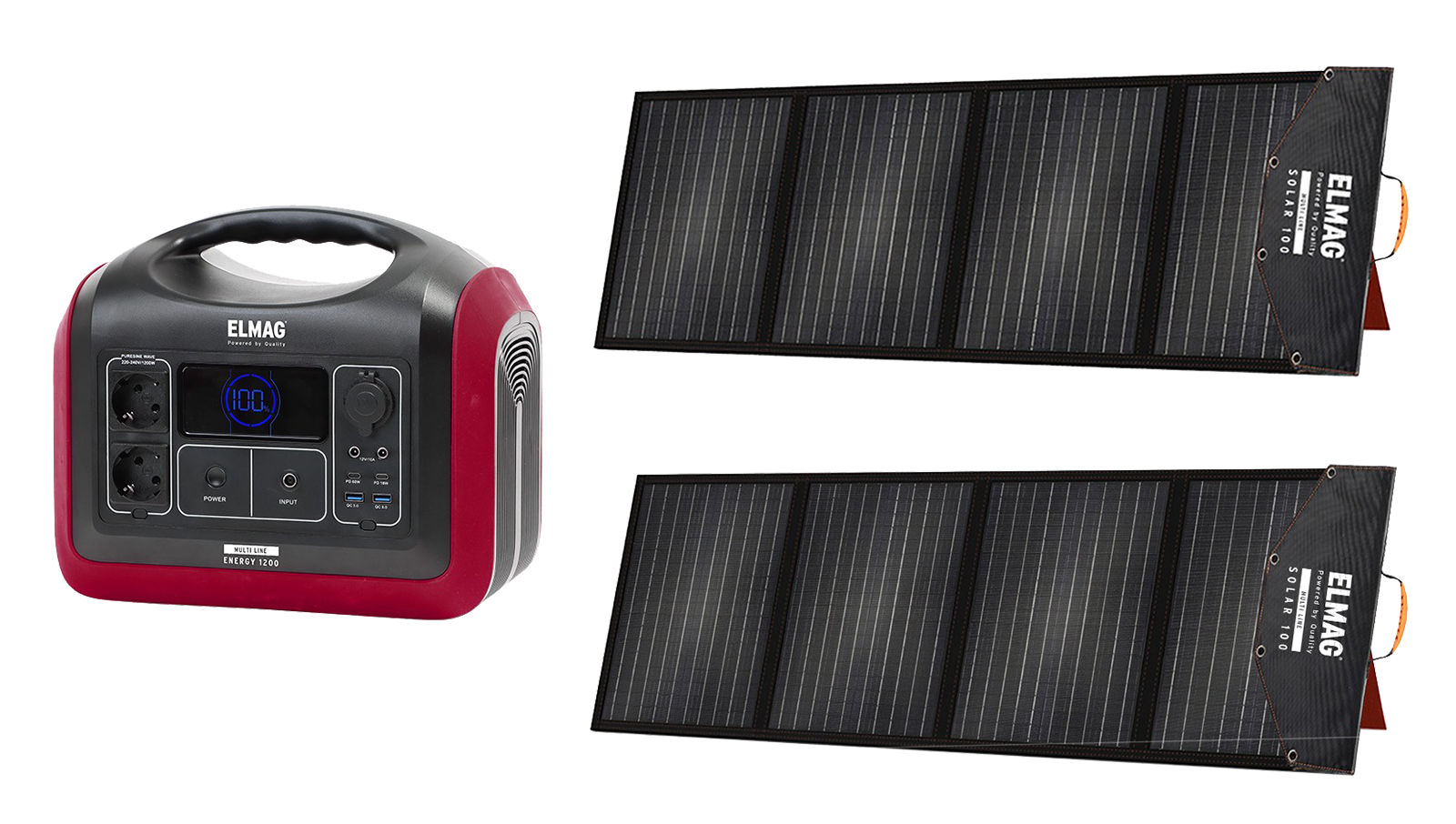 Tragbare Energiestation/Stromspeicher für eine netzunabhängige Strom-/Notstromversorgung.Energy-Ladestationen verfügen über einen langlebigen und zyklenfesten Lithium-Eisenphosphat-Akku (über 2500). Sicherer Betrieb auch bei hohen Temperaturen.Das intelligente Akkumanagement sorgt für Sicherheit vor Unterspannung, Überhitzung, Kurzschluss und Überladung.Der Akku verfügt über ein digitales Display zur einfachen Statusüberwachung: Akkukapazität in %, Restlaufzeit, abgegebene Leistung, aufgenommene Leistung, Statusausgänge und Anzeige der Schutzfunktionen. Die Ladung des Akkus erfolgt über ein 230V/Netz- oder 12V KZF-Ladegerät (beides im Lieferumfang enthalten) oder über ein optionales Solarmodul durch den integrierten Solarladeregler.2 x kompaktes, faltbares Solarpanel mit 100 Watt Leistung pro Panele. Durch die integrierten Stützfüße einfach im optimalen Winkel aufstellbar.Ideal geeignet für Wohnmobil, Haus und Garten oder zum mobilen Laden einer Powerstation.Technische Daten Solarpanel:Leistung: 2 x 100 WattMaße zusammengeklappt je Solarpanel: 415 x 370 x 35 mmMaße ausgeklappt je Solarpanel: 1670 x 415 x 441 mmTechnische Daten Powerstation:Leistung: 230 Volt.1-phasig 1200 WattKapazität 992 WhMaximale Belastung. Ladeleistung: 200 WL x B x H: 330x289x220 mmGewicht: 11 kg