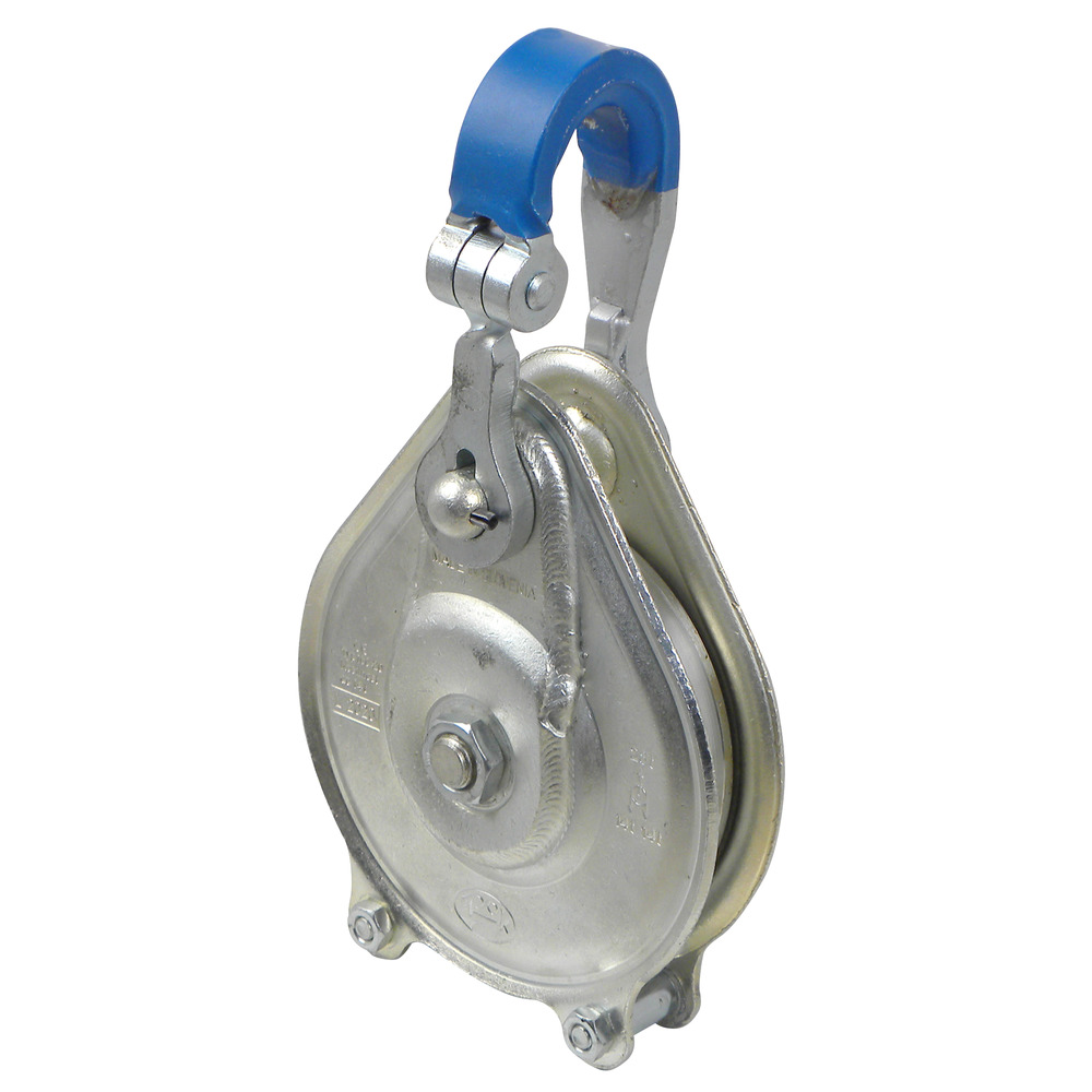 Erhöhte Zugkraft - geringes Gewicht! Neue Bauform mit 28 Tonnen zul. Zugkraft - 14 Tonnen max. Windenzugkraft! bei nur 7,6 kg Gewicht! Umlenkseilrolle mit Stahlgehäuse, Alurolle, Speziallager, sicherer Verschluss,beste Seilführung, handlich und einfache Handhabung. Rollen-ø 160 mm, Seil 10 – 20 mm, Höhe 36 cm. WARNUNG: Bei Benutzung des Flaschenzugs, muss das Gelenk oben sein.Im Einsatz ist es nötig, dass der Flaschenzug geschlossen, und der Haken in die Belastungsrichtung gedreht ist.