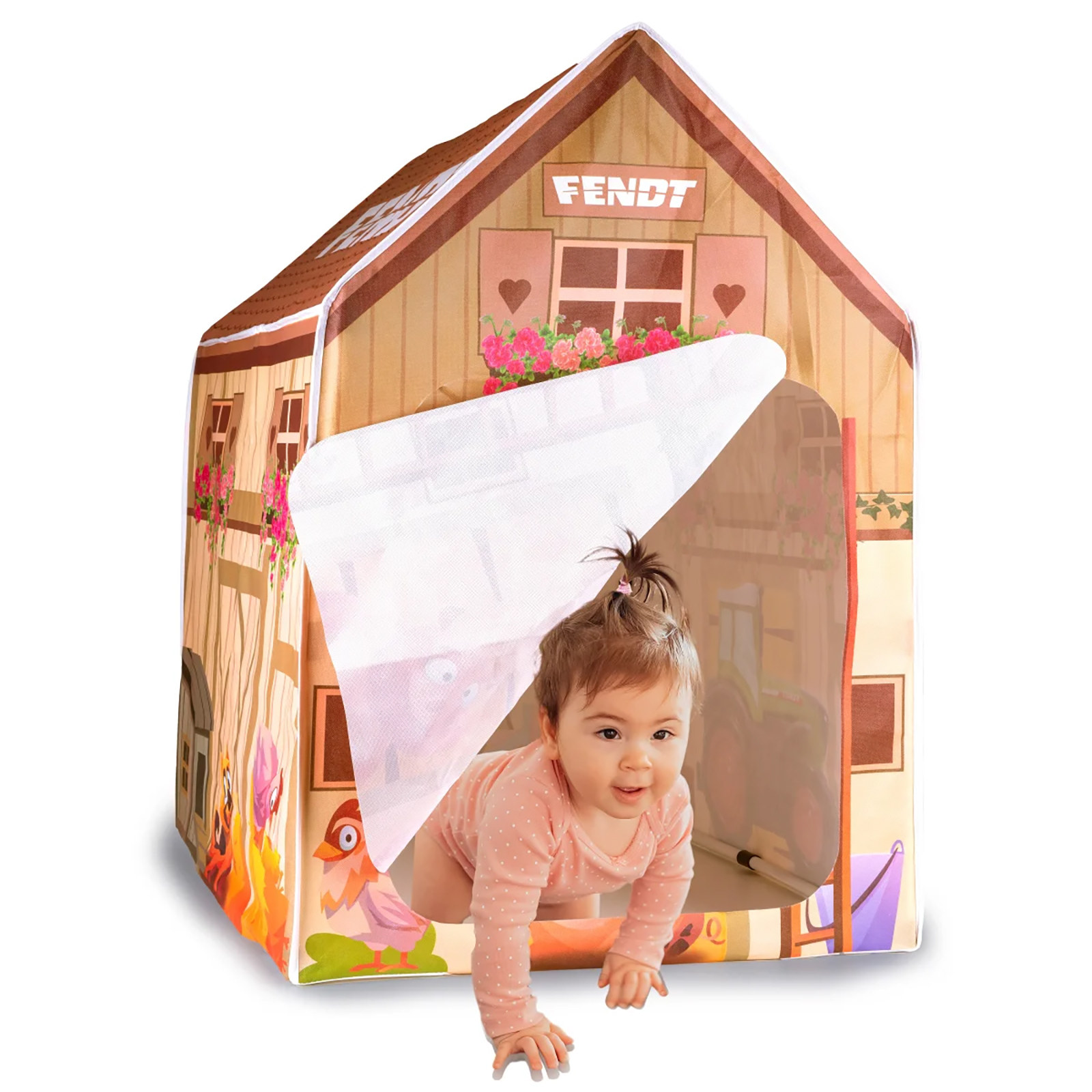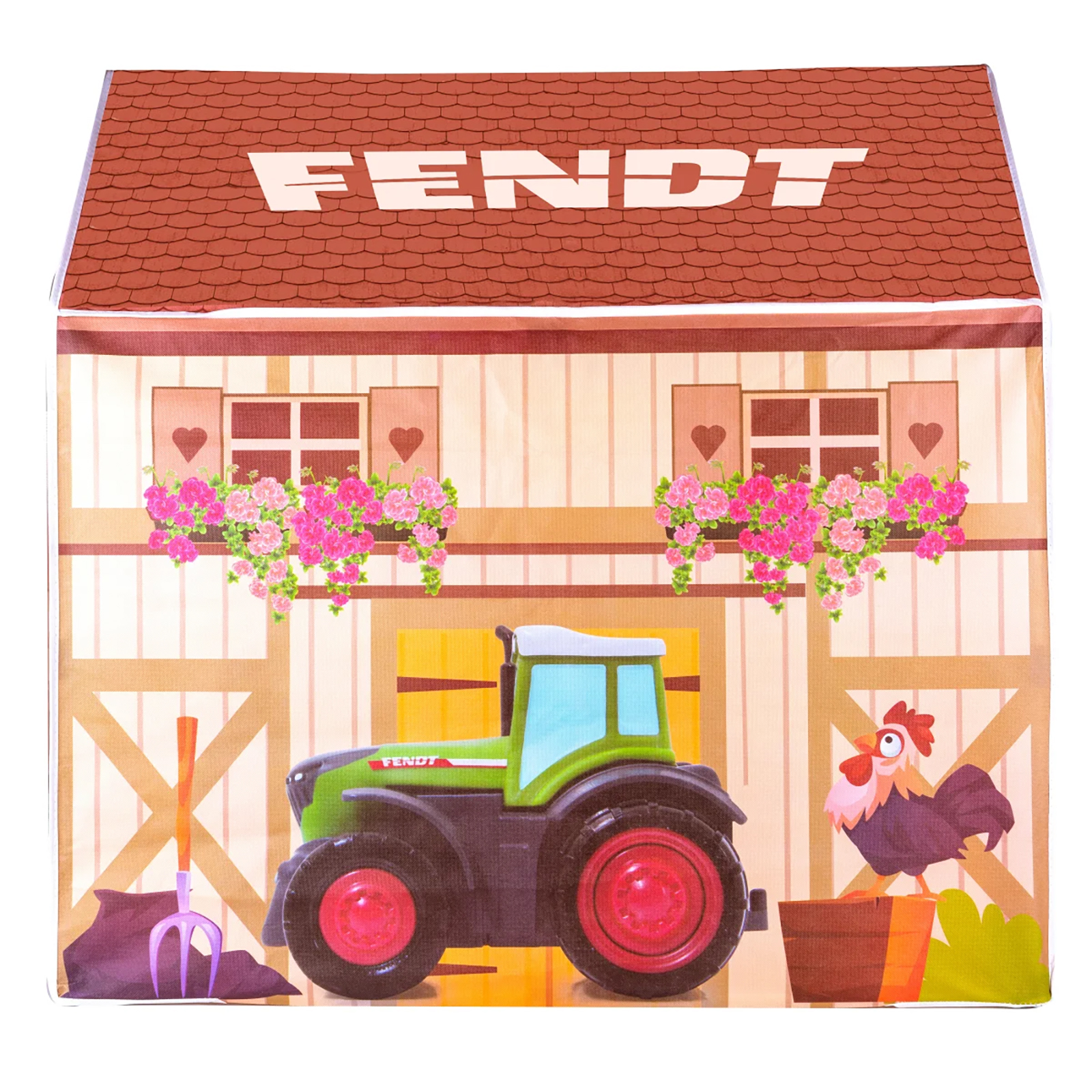 Fendt Spielhaus Bauernhof von JAMARA – Spielspaß für drinnenEin echtes Highlight für Kinderzimmer, Wintergarten oder Spielbereich: Das Spielhaus ist liebevoll gestaltet und lädt Kinder ab 18 Monaten zum Spielen, Lesen oder Verstecken ein. Das Design erinnert an einen typischen Allgäuer Bauernhof – mit bunten Farben, einem Fendt-Traktor und fröhlichen Hoftieren begeistert es Mädchen und Jungen gleichermaßen.Die offene Stoff-Tür erlaubt ein einfaches Hineinkrabbeln. Kuscheltiere, Bücher oder kleine Schätze finden darin genauso Platz wie die Fantasie kleiner Abenteurer.Dank einfachem Stecksystem und bebilderter Anleitung ist das Haus schnell aufgebaut – ganz ohne Werkzeug. Bei Bedarf lässt es sich ebenso leicht wieder zusammenlegen und platzsparend im Karton verstauen.Mit nur ca. 1 kg Gewicht ist das Spielhaus auch ideal für unterwegs. Ob allein oder mit Freunden: Dieses geräumige Zelt sorgt für viele fröhliche Spielstunden – das ganze Jahr über.• Indoor geeignet• Fördert das Rollenspiel und die Fantasie• Rundum bedrucktes Bauernhof Motiv• Zelt mit Türöffnung• Einfache Montage durch zusammensteckbare Elemente• Platzsparend demontierbarArtikelgewicht: 1,16 kgAbmessungen ( Länge × Breite × Höhe ): 95,00 × 95,00 × 65,00 cmAltersempfehlung: ab 18 Monate