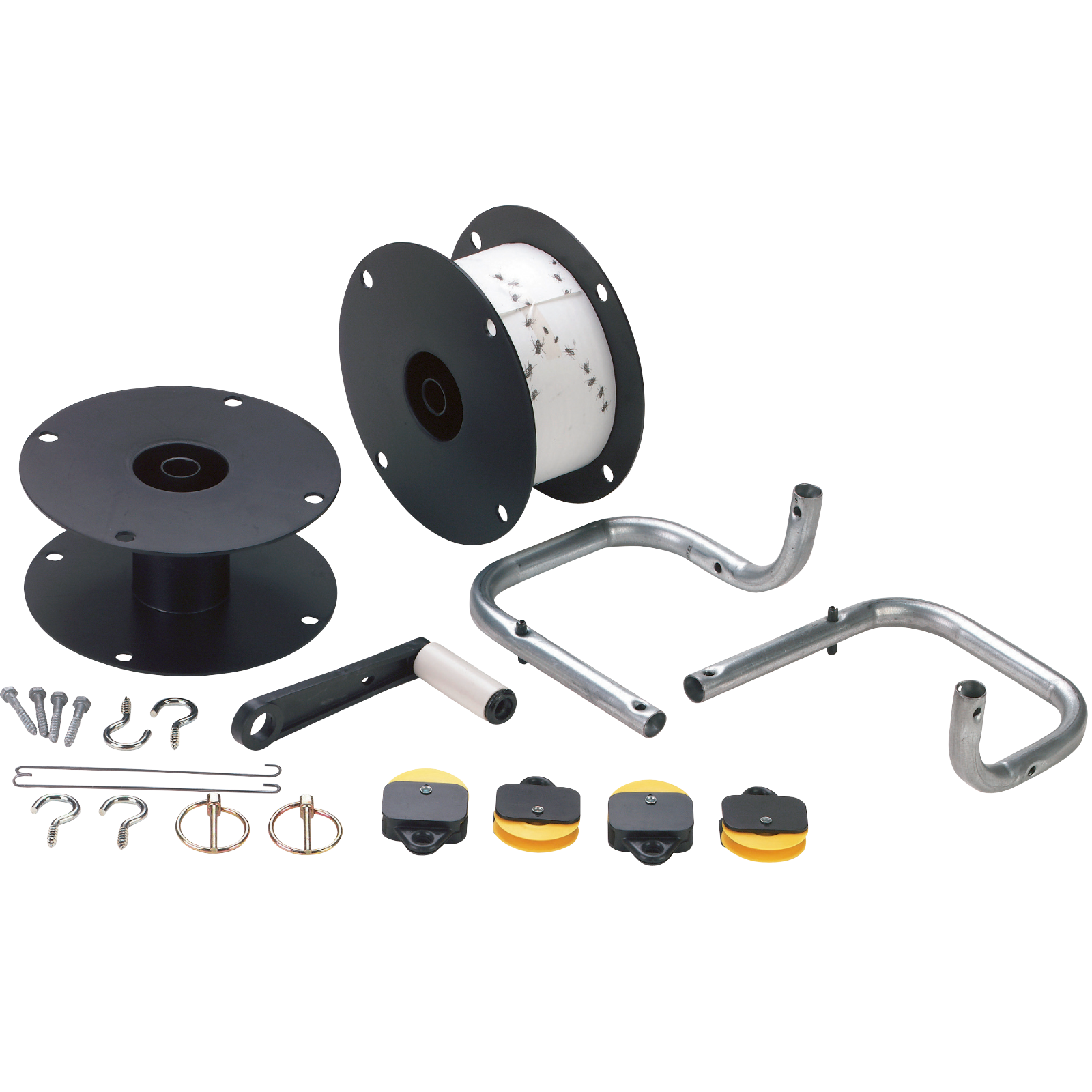 Komplett-Set mit 440 m Klebe-Schnur, umweltfreundliche Alternative zur Fliegenbekämpfung im Stall.Verbrauchtes Band wird auf die mitgelieferteLeerhaspel aufgerollt, einfache Selbstmontage.Ersatzrollen können problemlos ausgetauscht werden.