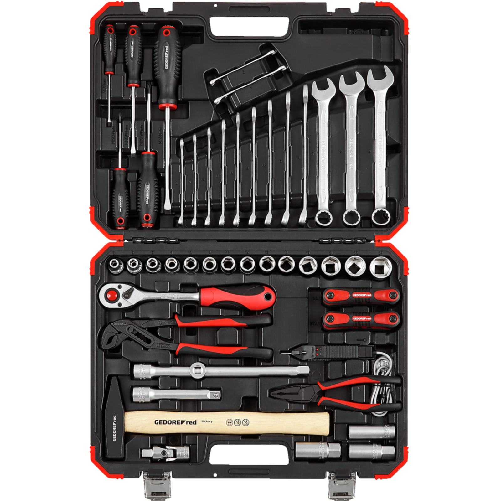 Universal Werkzeugkoffer, bestückt mit den wichtigsten Werkzeugen.Alles in bewährter Gedore-red Qualität. Die Werkzeuge sind Formstabil in eine massiven Kunststoffkoffer verwahrt, dadurch ist ein einfacher Transport gewährleistet.Der Koffer eignet sich perfekt für den mobilen Einsatz oder als Zusatzausstattung für Ihren PKW, Traktor oder sonstige Fahrzeuge.Maße: 452 x 86 x 340 mm BxHxTGewicht nur ca. 7 Kg.