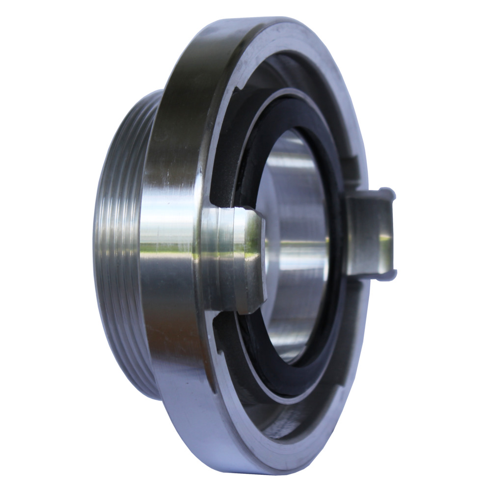 Storz Kupplung (Feuerwehranschluss) mit Außengewinde. Die Festkupplung ist aus Aluminium-Guss mit einer Nitril-Kautschuk Dichtung. Hergestellt in Deutschland.