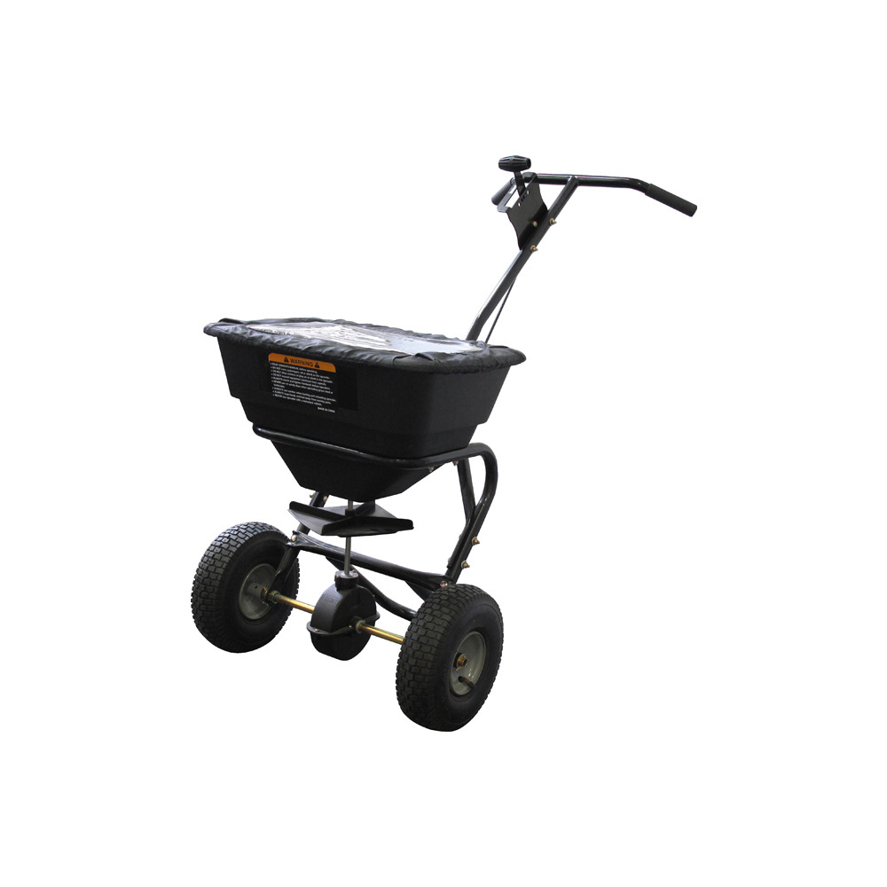 Universal einsetzbarer Profi Streuwagen für Dünger, Samen, Kalk und Streusalz. Großer 29 Liter Kunststoffbehälter mit serienmäßiger Abdeckhaube, Streubreite bis zu 3 Meter. Stabiles Metallgestänge zur Einstellung der Dosiermenge. Große luftbereifte Räder für gute Traktion und optimale Bodenschonung.