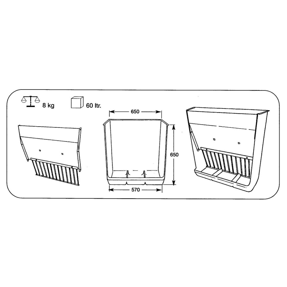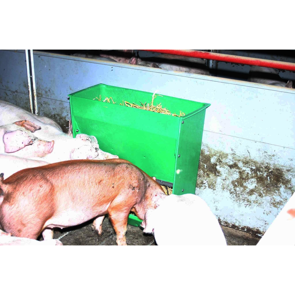Strohraufe für die artgerechte Schweinehaltung, aber auch für Kälber, Ziegen oder Schafe gut geeignet! Durch die integrierte Schale im unteren Teil der Raufe landet weniger Stroh oder Heu am Boden bzw. in den Bodenspalten. Breite: 57 cm unten, 65 cm oben. Höhe: 65 cm. Inhalt: 60 L.