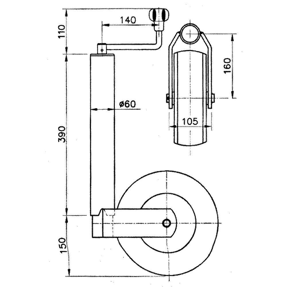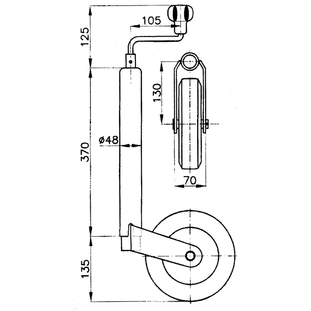 Produktinformationen "Stützrad für PKW-Anhänger, verzinkt, Vollgummirad"