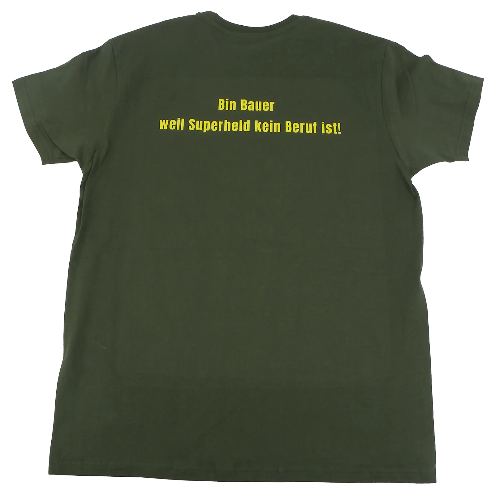 Das grüne T-Shirt FAIE – dein Statement zur Landwirtschaft !Mit dem T-Shirt FAIE aus 100 % Baumwolle trägst du nicht nur Qualität, sondern auch Persönlichkeit.Gefertigt aus hochwertiger Baumwolle, sorgt es für optimalen Tragekomfort – egal ob auf dem Hof, in der Werkstatt oder in der Freizeit.Als Fan-Artikel zeigt es deine Verbundenheit mit echter Landwirtschaft und bodenständigem Handwerk.Mit dem Spruch Bin Bauer, weil Superheld kein Beruf ist auf der Rückseite, setzt du ein starkes Zeichen für deinen Stolz und deine Leidenschaft.Das zeitlose Design und die robuste Verarbeitung machen dieses Shirt zu deinem perfekten Begleiter.Zeig, dass du Stil und Überzeugung kombinieren kannst – mit dem T-Shirt FAIE !!Material:100 % einlaufvorbehandelte, ringgesponnene Baumwolle