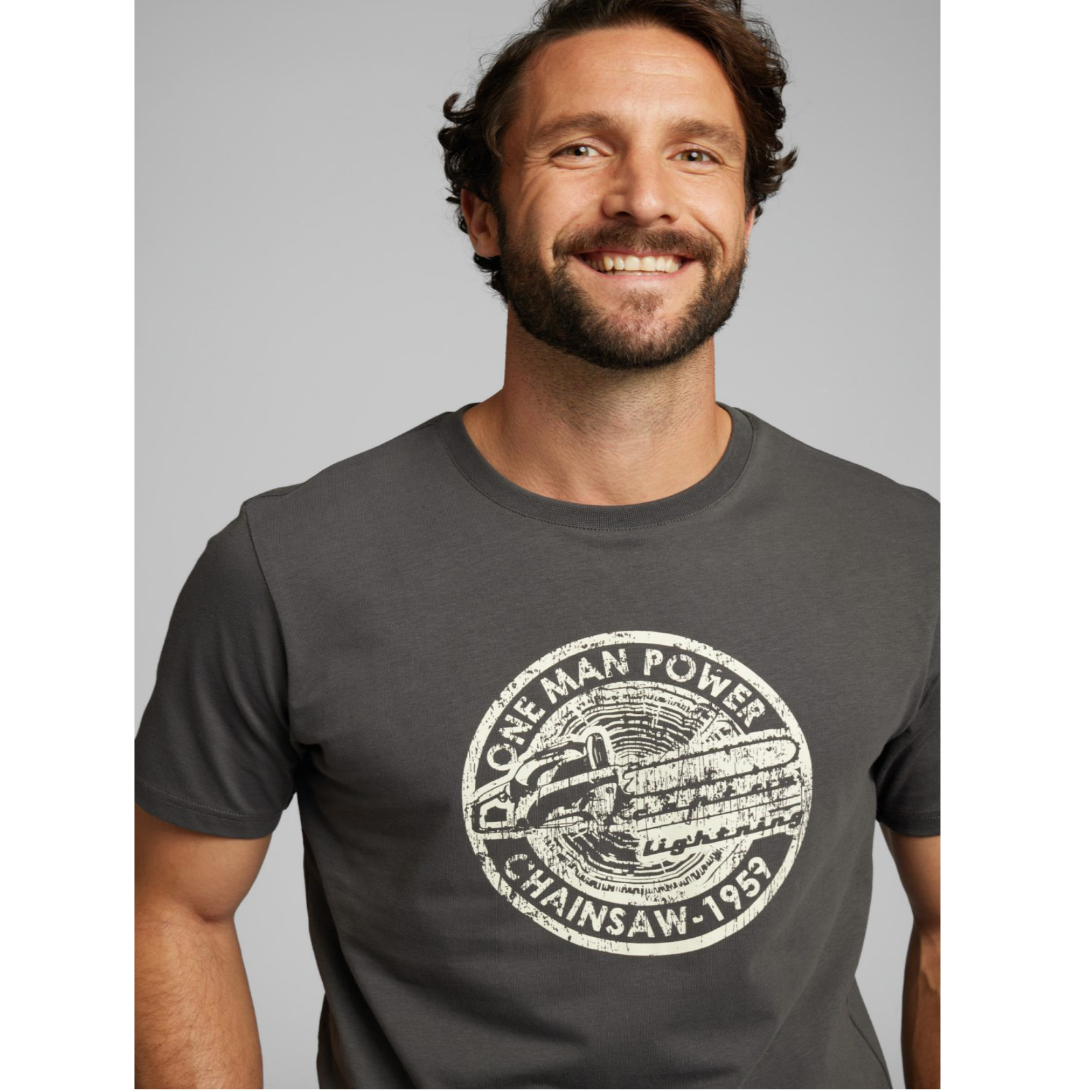 Die Legende am Shirt prangt die STIHL CONTRA, die erste STIHL Einmann-Motorsäge,die ab 1959 die Arbeit im Wald revolutionierte.Das hochwertige Rundhals-Shirt für Herren ist in einem schlichten Grau gehalten. Kleines STIHL Heritage Web-Label auf der Rückseite rechts unten.100% BaumwolleGrößen : S - XXXL