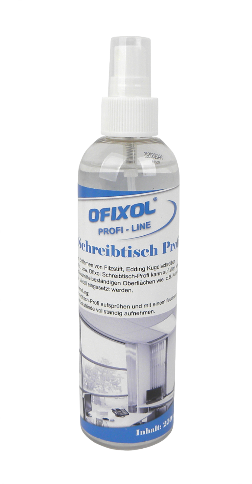 Spezialreiniger zur rückstandslosen Entfernung von Permanent- und Folienschreibern auf Kunststoffoberflächen.