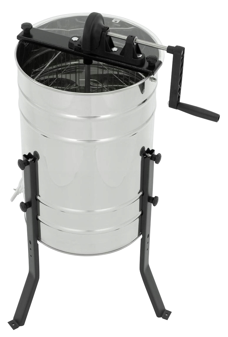 Preiswerte kompakte Honigschleuder mit Handantrieb und Kunststoff-Quetschhahn. Für den Einsatz in kleineren Bienenständen im Hobbybereich konzipiert. Die Schleuder bietet Platz für 3 Rähmchen (DNM, Zander, Langstroth). Die Trommel ist aus säurebeständigem Edelstahl gefertigt. Der Korb besteht aus rostfreien, säurebeständigen Stäben. Durch die transparente Ausführung des Deckels besteht die Möglichkeit den Schleudervorgang zu beobachten, ohne ihn zu öffnen.
