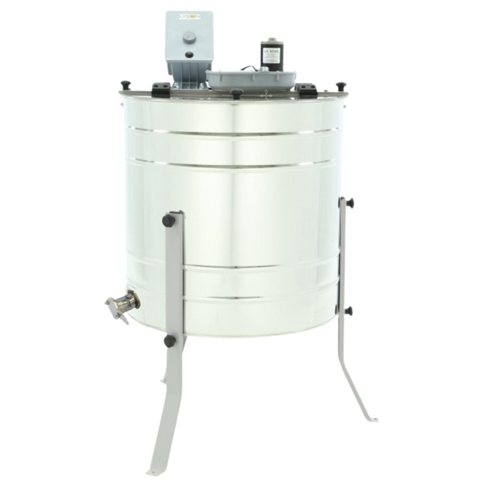 Praktische Honigschleuder für Hobbyimker und Einsteiger mit elektrischem Antrieb. Die Schleuder bietet Platz für 4 Rähmchen (DNM, Zander, LS, BW, Dadant). Die Trommel ist aus säurebeständigem Edelstahl gefertigt. Der Korb besteht aus rostfreien, säurebeständigen Stäben. Der Korb kann zum Reinigen sehr einfach ausgebaut werden. Durch die ausgeklügelte Konstruktion ohne Mittelachse können die Rähmchen in der Schleuder gewendet werden, ohne sie heraus und wieder hinein zugeben. Die transparente Ausführung des Deckels ermöglicht es den Schleudervorgang zu beobachten, ohne ihn zu öffnen.