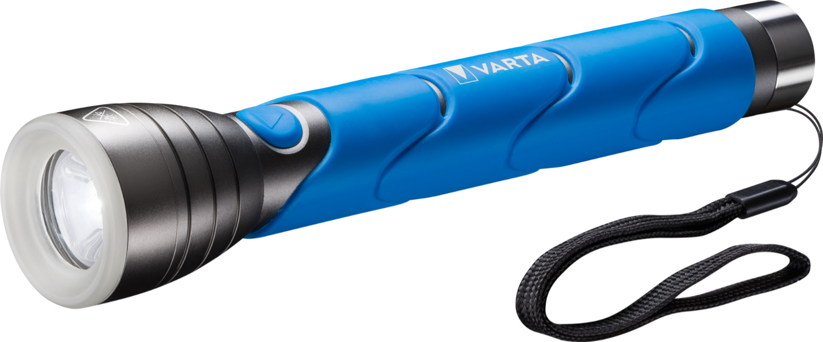 Mit gummiertem Griff für sicheren Halt, integrierter Handschlaufe und einem praktischen Flaschenöffner in der Endkappe