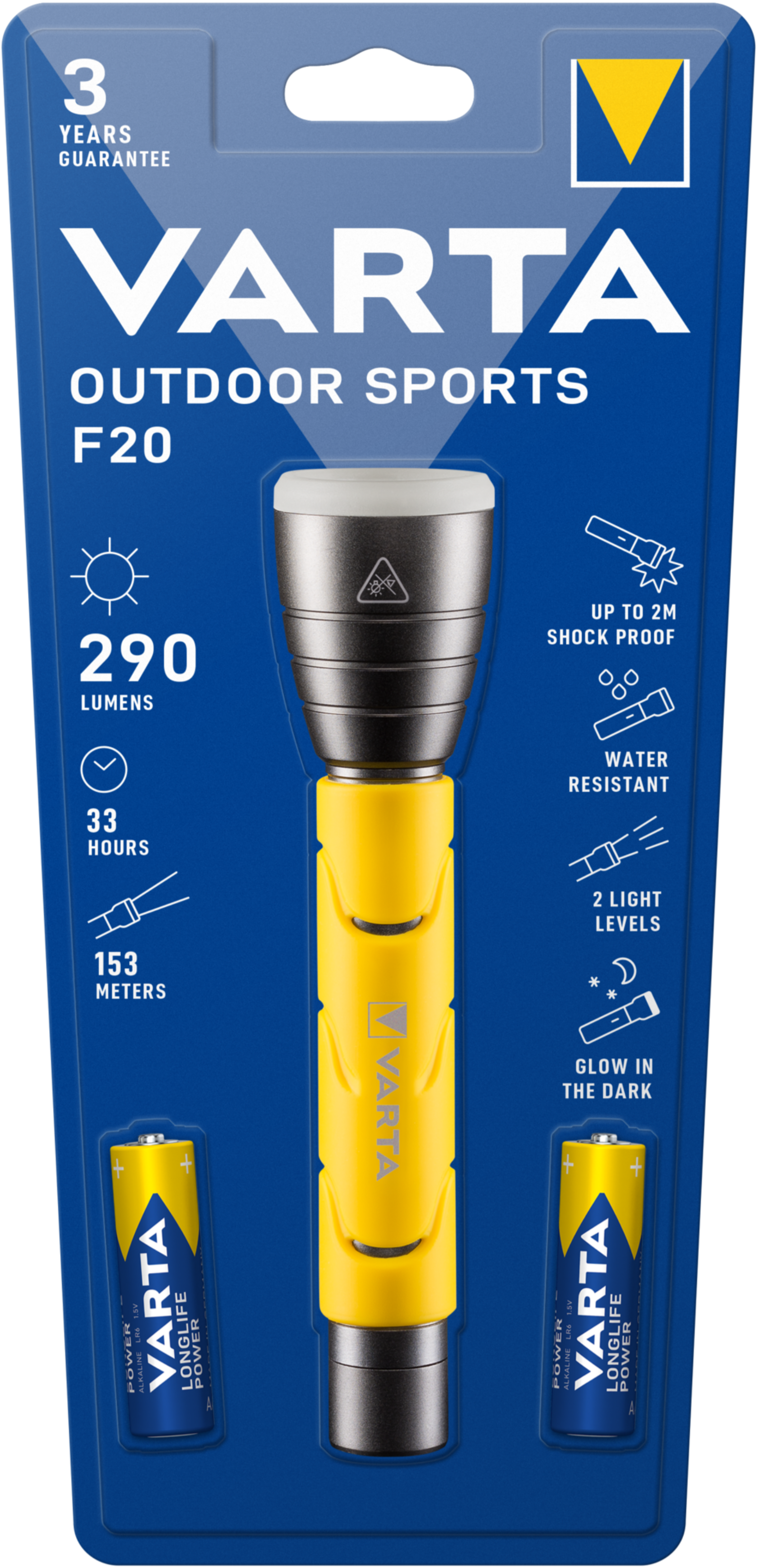 Produktinformationen "Taschenlampe Outdoor SportsF20 gelb mit 2AA Batterien"