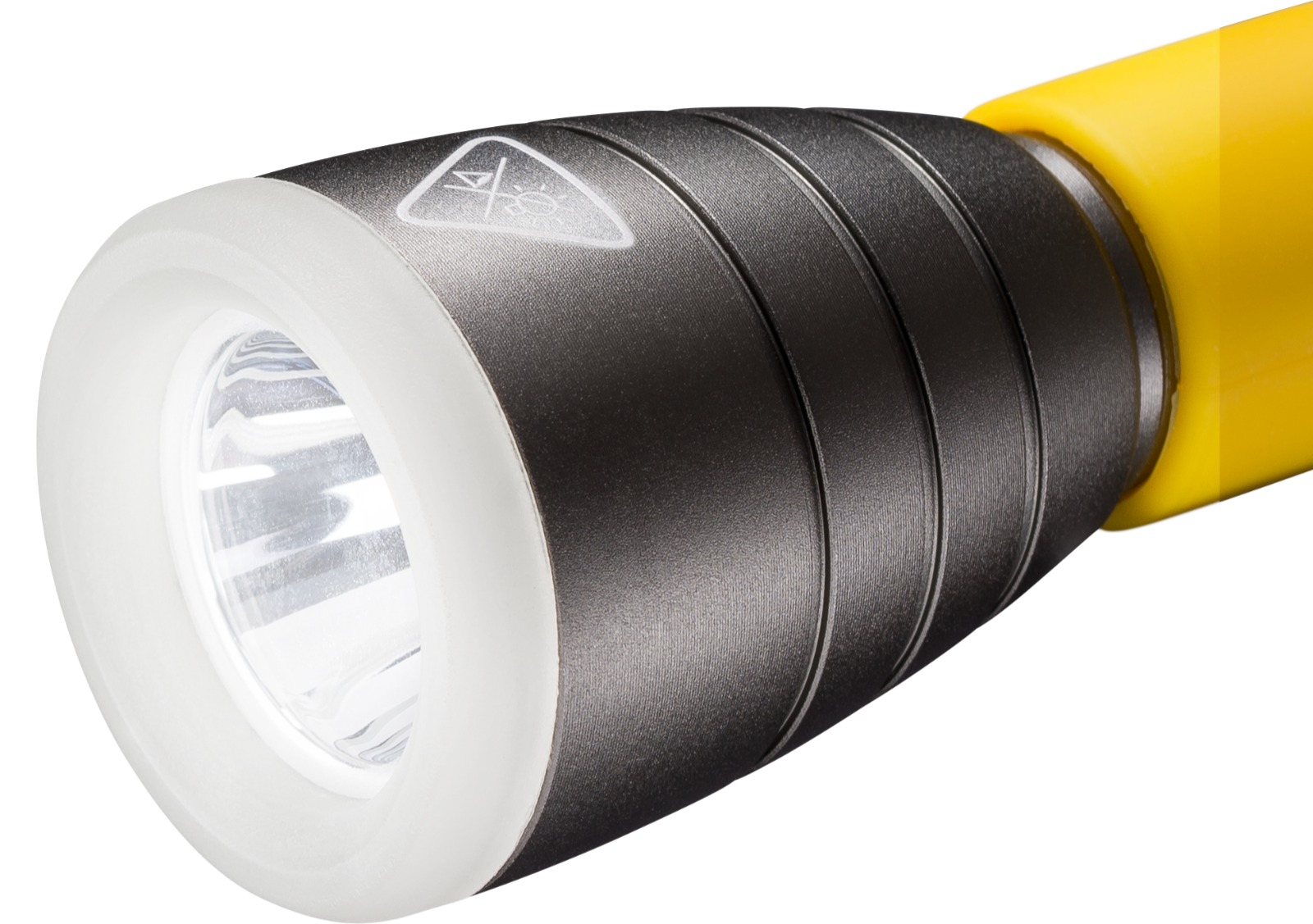 Das nachleuchtende „Angel Eye“-Element am Lampenkopf erleichtert das Wiederfinden im Dunkeln. Ein gummierter Griff sorgt für sicheren Halt, auch bei Nässe.