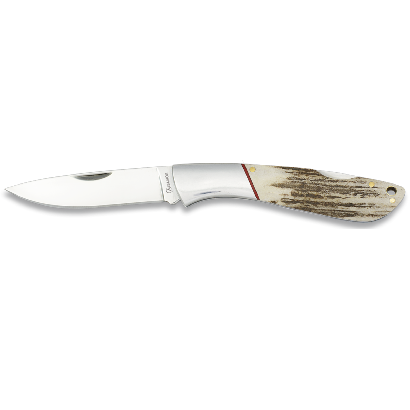 Dieses formschöne Taschenmesser ist ausgestattet mit Griffschalen aus Hirschhornimmitatmit nur 103 Gramm ein sehr handliches und leichtes Taschenmesser