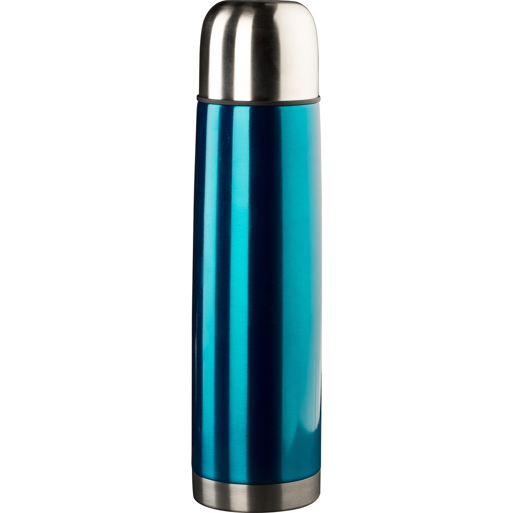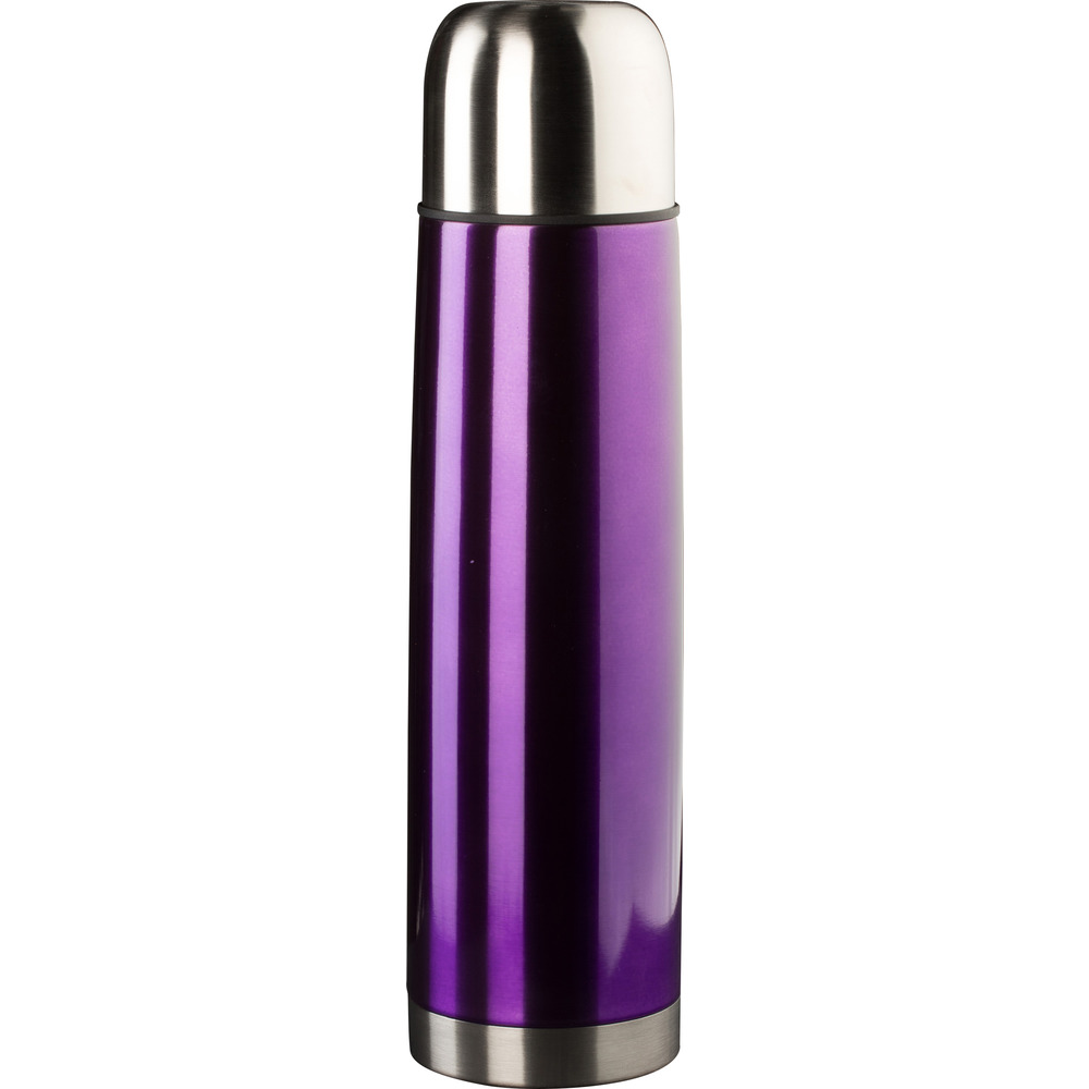 Unzerbrechliche Isolierflasche aus Edelstahl. Doppelwandig, Automatik-Verschluss (per Knopfdruck).0,4 mm Materialstärke, Körper farblich sortiert, 5 Jahre Garantie!