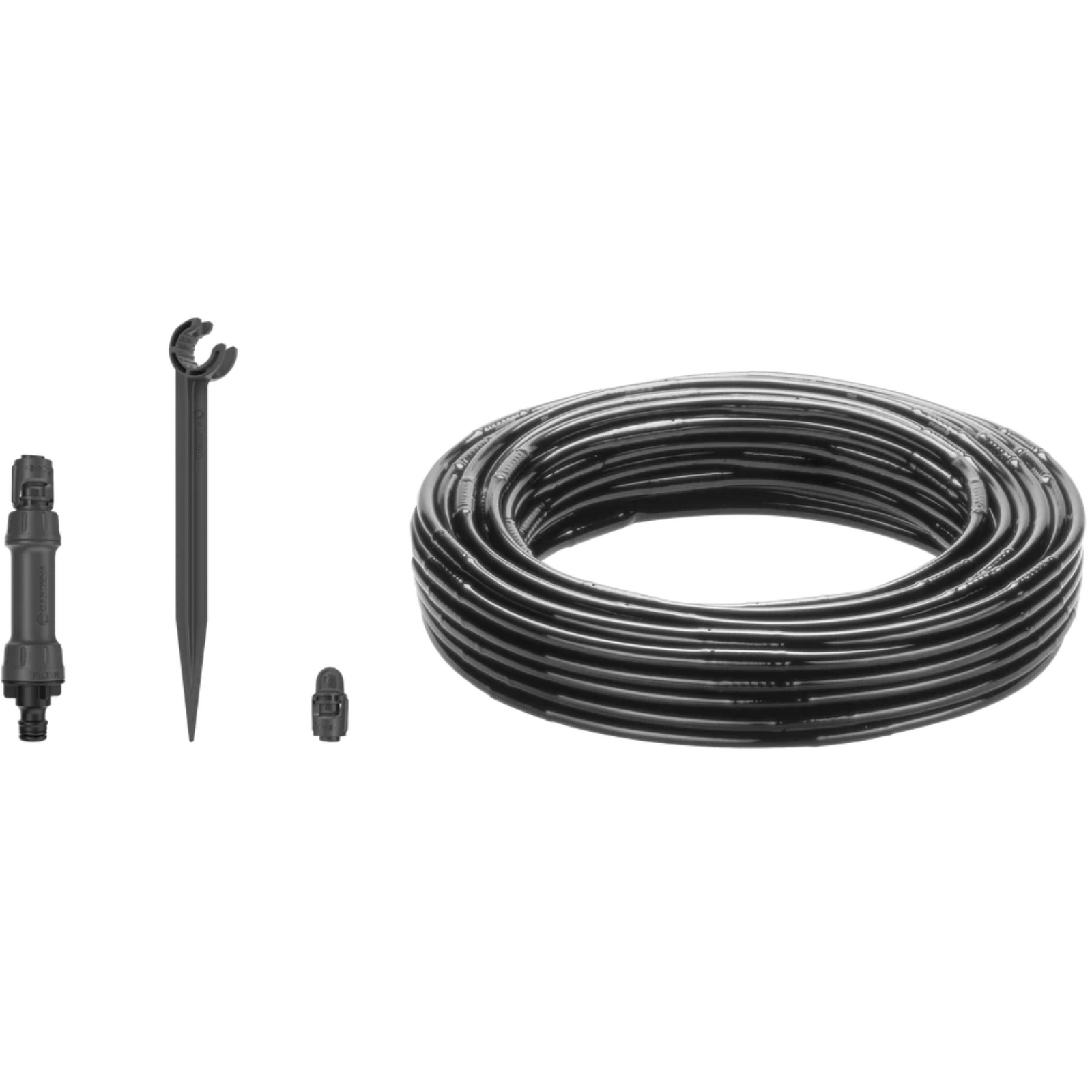 Praktisches Bewässerungsset mit 25 m Tropfrohr 13 mm, 15 Stk Rohrhalter und einen Verschlussstopfen.Für Ober-oder unterirdische Verlegung geeignet.Anspeisung Kundenseitig durch Zeitschaltuhr,Gardena Smart - Bewässerungssystem oder dgl.