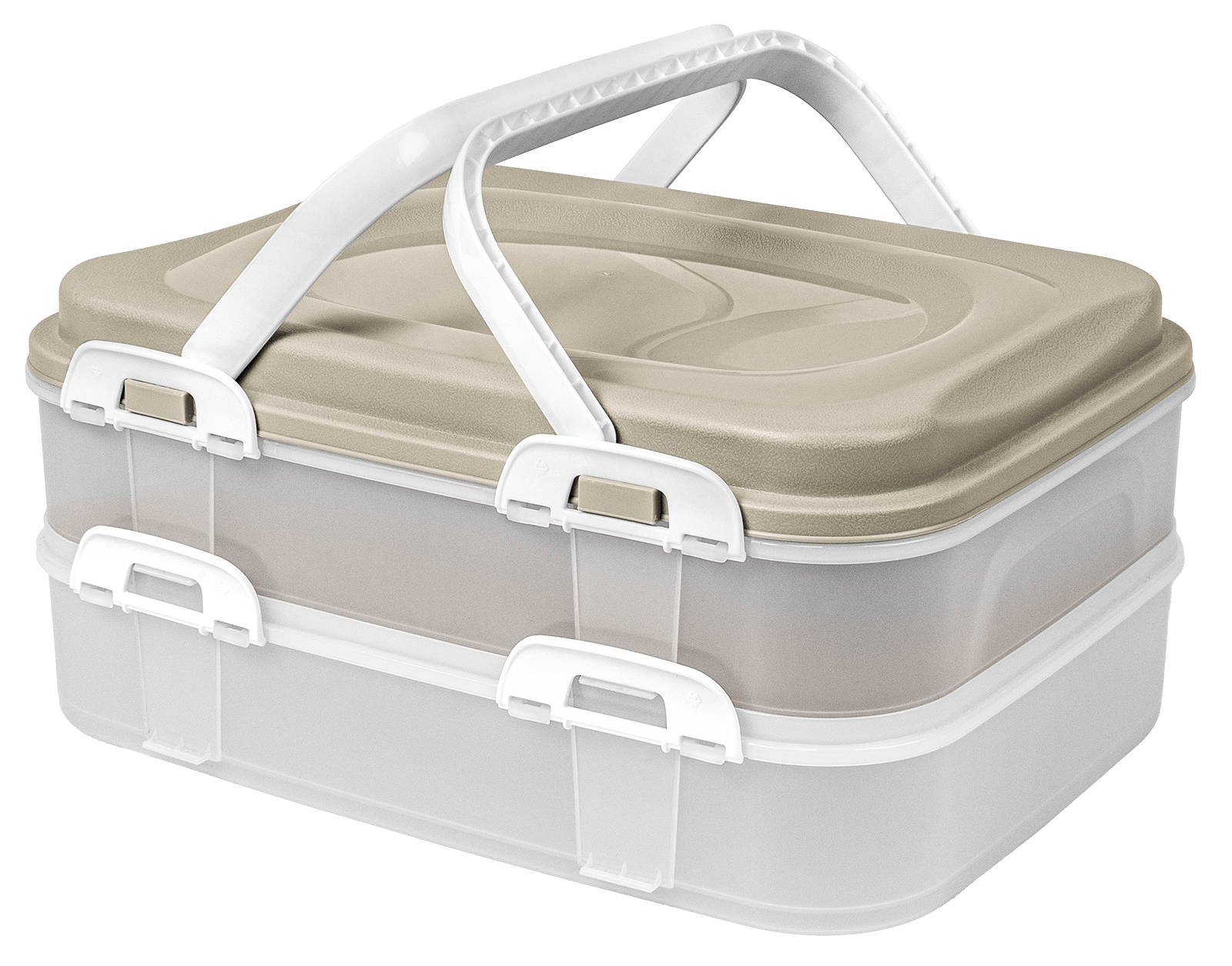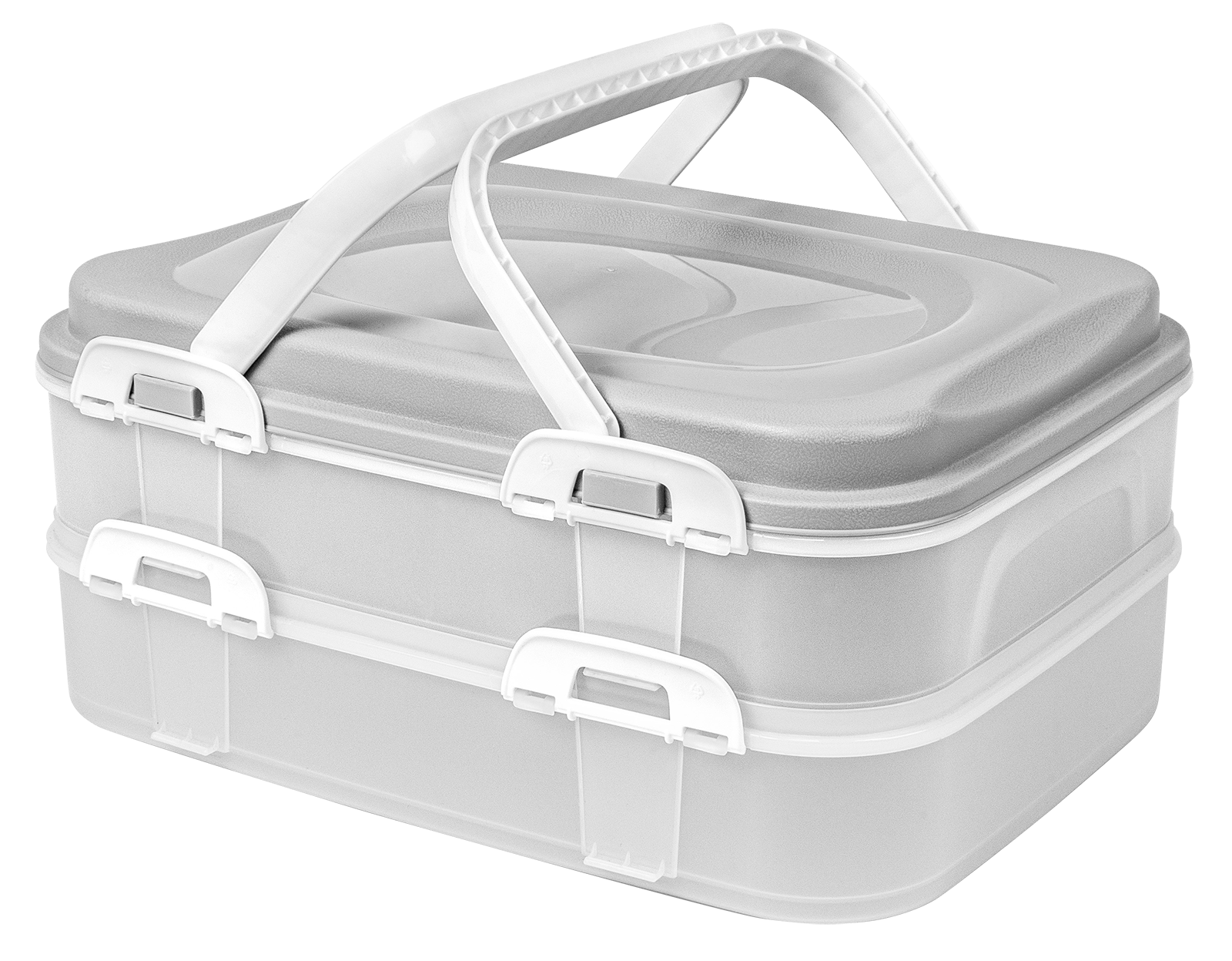 Transportbehälter „Party“ – doppelt praktisch für unterwegsOb Kuchenstücke, Snacks, belegte Brötchen oder Fingerfood – im zweistufigen Transportbehälter „Party“ bleibt alles frisch und sicher verstaut.Mit seinen Maßen von 40 × 30 × 18 cm bietet er viel Platz auf zwei Ebenen, inklusive praktischem Einsatz zur Trennung der Speisen.Der Deckel mit integrierten Tragegriffen sorgt für einen einfachen, sicheren Transport – ideal für Feiern, Picknicks, Schulveranstaltungen oder Vereinsfeste.Der Behälter ist aus robustem, lebensmittelechtem Kunststoff gefertigt und leicht zu reinigen.Farblich sortiert – eine Farbauswahl ist leider nicht möglich.Ein vielseitiger Begleiter für alle, die gern vorbereiten und mitbringen.Maße: 40 × 30 × 18 cm