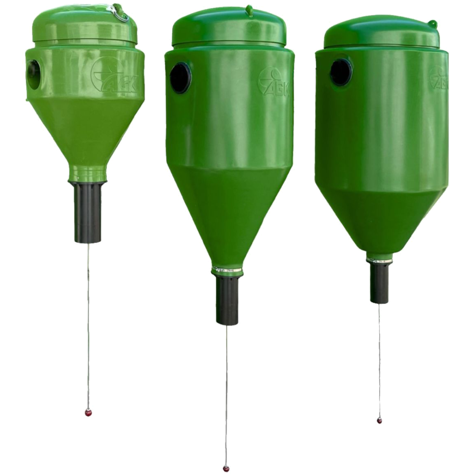 Trockenfutterspender mit PendelmechanismusDas Gehäuse besteht aus einem einzigen, durchgehend gefertigten Stück – vollständig wasserdicht und beständig gegen UV-Strahlung.Die Montage ist denkbar einfach:Der Futterspender wird lediglich auf ein vorhandenes Rohr aufgeschoben.Es sind keine zusätzlichen Befestigungen wie Winkel, Schellen oder Halter notwendig.Der Deckel sitzt sicher durch einen stabilen Einrastmechanismus und kann über eine Kette direkt am Trägerrohr gesichert werden.Die Einstellmöglichkeiten für die Futterdosierung befinden sich geschützt im Inneren des Behälters.Jeder Spender lässt sich flexibel mit verschiedenen Einsätzen ausstatten, etwa mit einem Pendelmechanismus, einem Vibrationsmodul oder einer Streuvorrichtung.Diese Adapter werden unkompliziert von unten eingesetzt und fixiert.Variante:Pendelmechanismus für pelletiertes TrockenfutterHier löst der Fisch selbst die Futterausgabe aus, indem er mit dem Pendel in Kontakt tritt.Die Futtermenge sowie die Korngröße lassen sich präzise und individuell regulieren.
