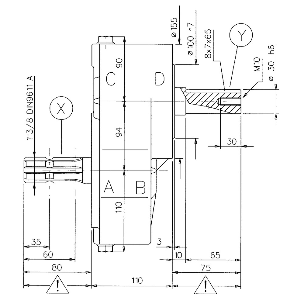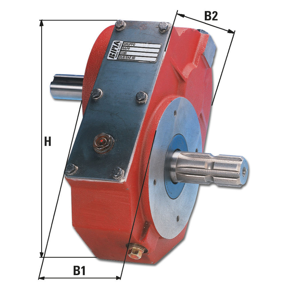 Für verschiedene Anwendungsarten speziell in der Landwirtschaft. Geringe Abmessungen und geringes Gewicht. Einfache Wartung. Die Getriebe werden ohne Ölfüllung ausgeliefert. Allgemeine technische Daten:Anschluss Eingang: 1 3/8 ZollAnschluss Ausgang: Ø 30 h6Drehrichtungsumkehr: jaHöhe H: 294 mmBreite B1: 110 mmBreite B2: 215 mmIm allgemeinen führen Drehmomentspitzen bis zum 2-fachen des Nenndrehmoments zu keiner Beschädigung der einzelnen Getriebebauteile. Vollständige Unversehrtheit kann jedoch nur durch eine geeignete Sicherheitsvorrichtung gewährleistet werden.