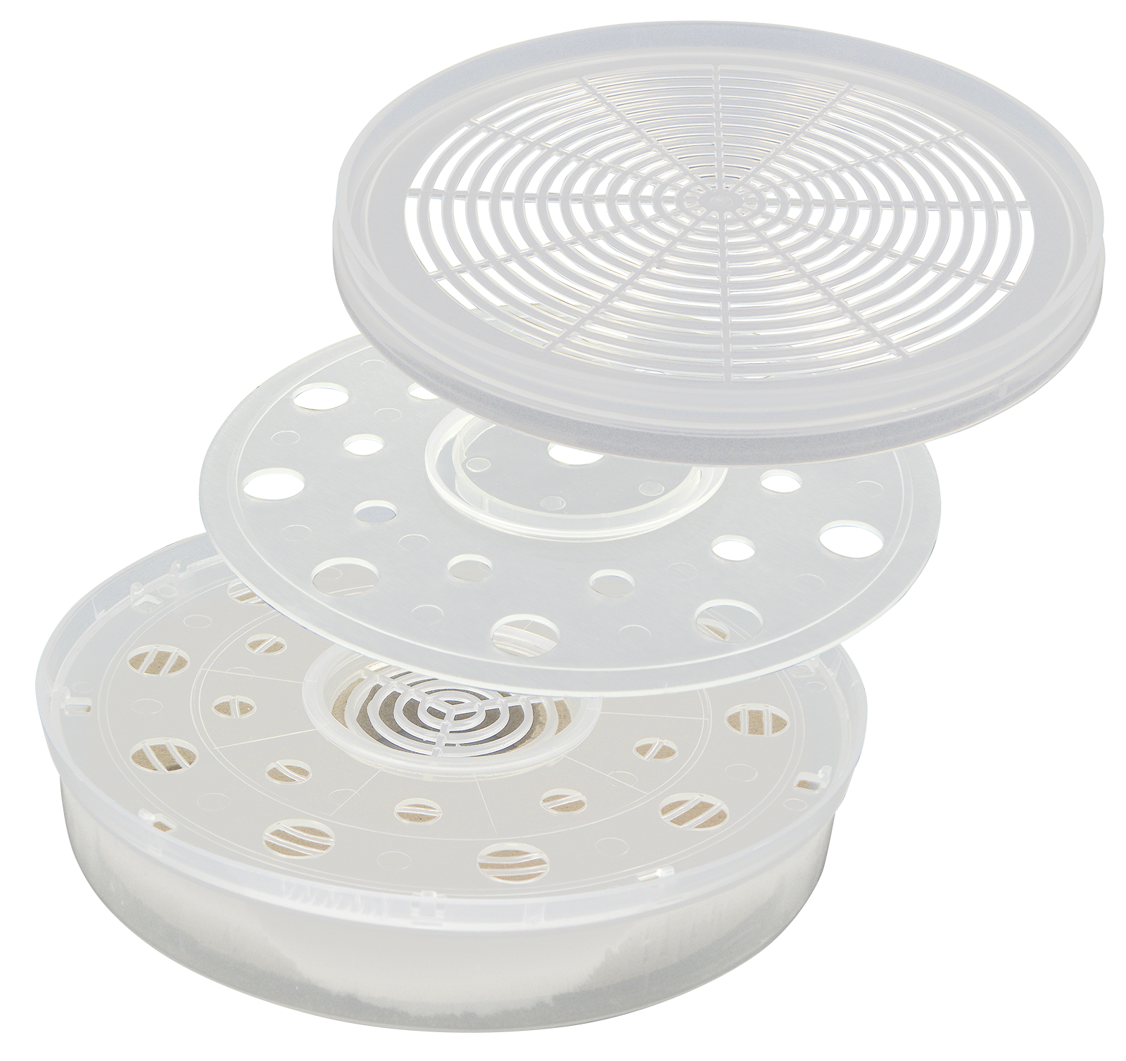Flacher, runder Ameisensäure-Verdunster zur Varroabehandlung bei Bienenvölkern.Geeignet für alle Beutentypen.Behandlung oben oder unten im Zargenturm möglich.Einfach und sicher zu Befüllen am Besten mittels Dosierspritze, den Deckel erst am Bienenstock entfernen.Verdunstungsdosis je nach Volkstärke und Temperatur über zwei gegenläufige Lochplatten regulierbar. Detaillierte Bedienungsanleitung siehe pdf-Datei!Inklusive Speicherblock (Schwamm) und luftdichten Deckel.Höhe: circa 45 mmDurchmesser: 170 mmBeim Verwenden der Ameisensäure große Vorsicht walten lassen! Unbedingt Schutzkleidung (Schutzbrille, säurefeste Handschuhe, langärmelige Baumwollbekleidung) verwenden!