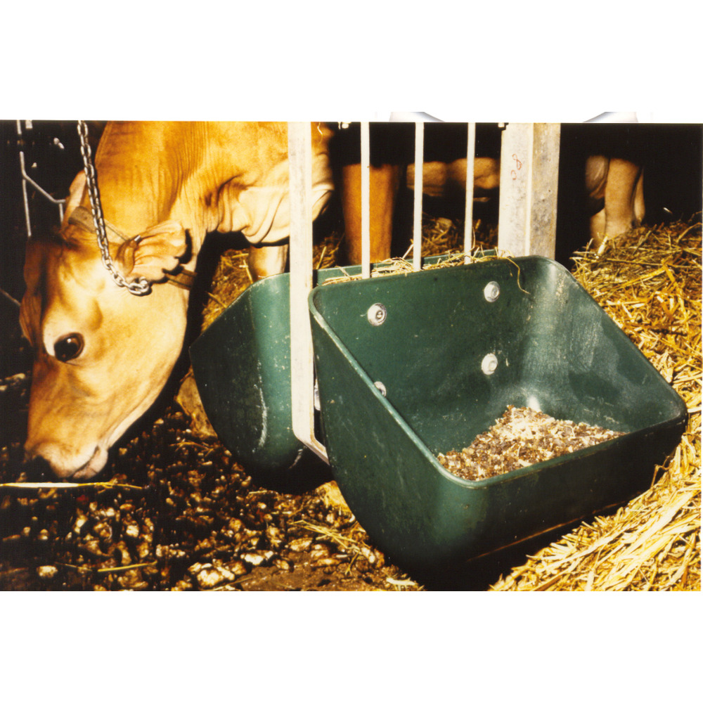 Für Schweine und Kühe aus Spezialkunststoff, hart und widerstandsfähig. Abgerundete Kanten und Ecken, hygienisch, BxHxT45x32x29 cm.