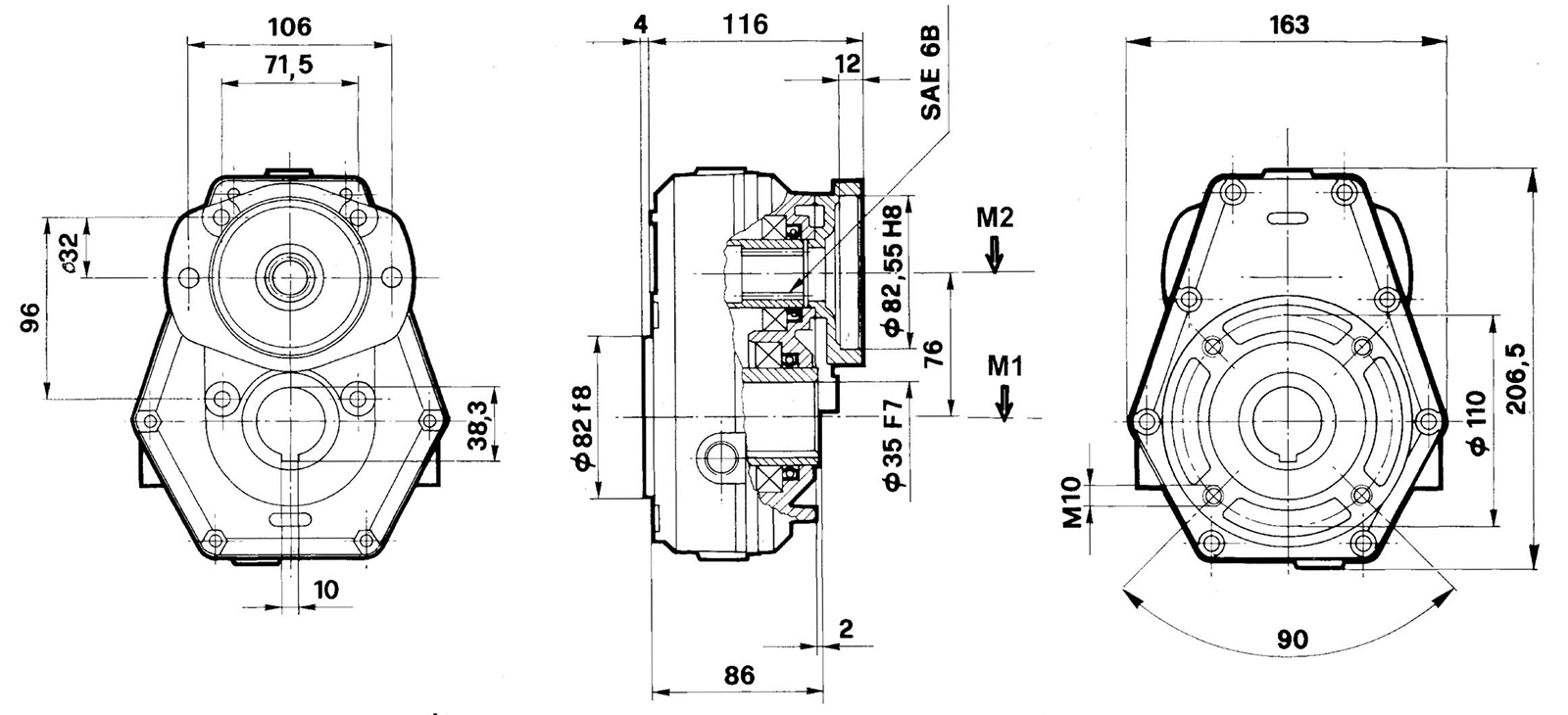 Produktinformationen "Untersetzungsgetriebe 2 : 1 Gr.2 für Ölmotore mit SAE-A Anschlussflansch und Wellen-ø 25 mm"