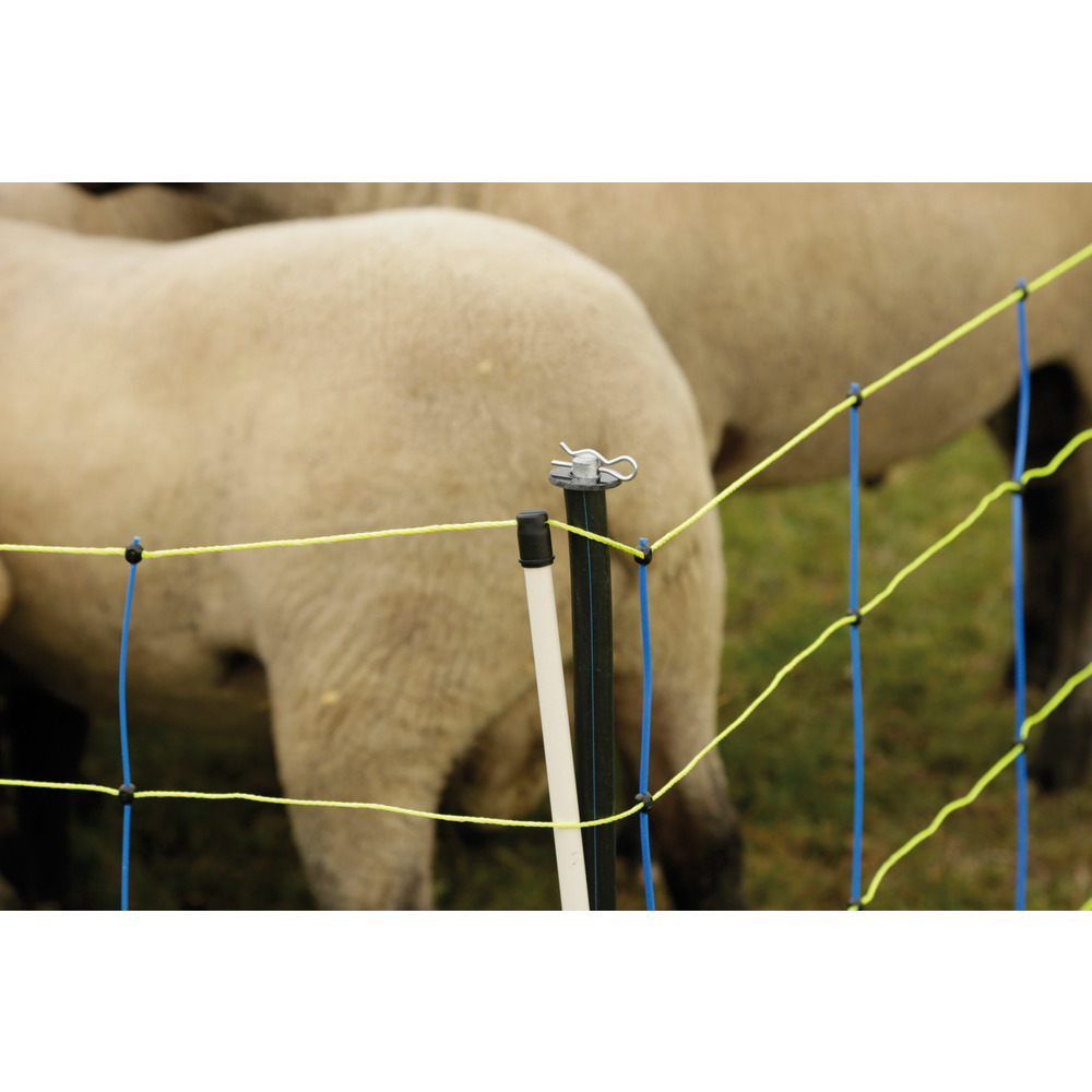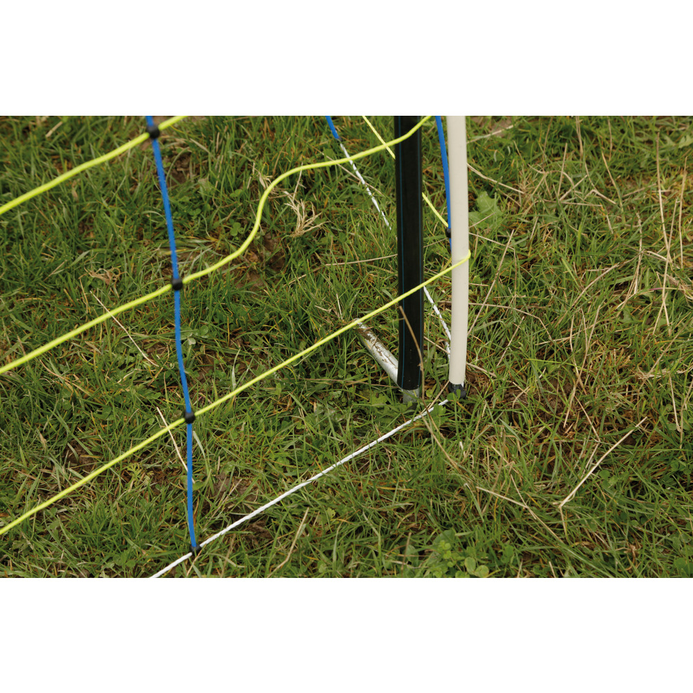 Dieser Pfahl ist perfekt geeignet als Anfangs- oder Endpfahl bei Weidenetzen. Er kann ideal in Ecken platziert werden um das Netz zu stabilisieren und auf Zug zu spannen. Der Pfahl innen ist aus massivem, verzinktem Rundstahl (Ø 14 mm), die Ummantelung ist aus Kunststoffrohr (Ø 20 mm) um Ableitungen an elektrischen Weidenetzen zu verhindern.