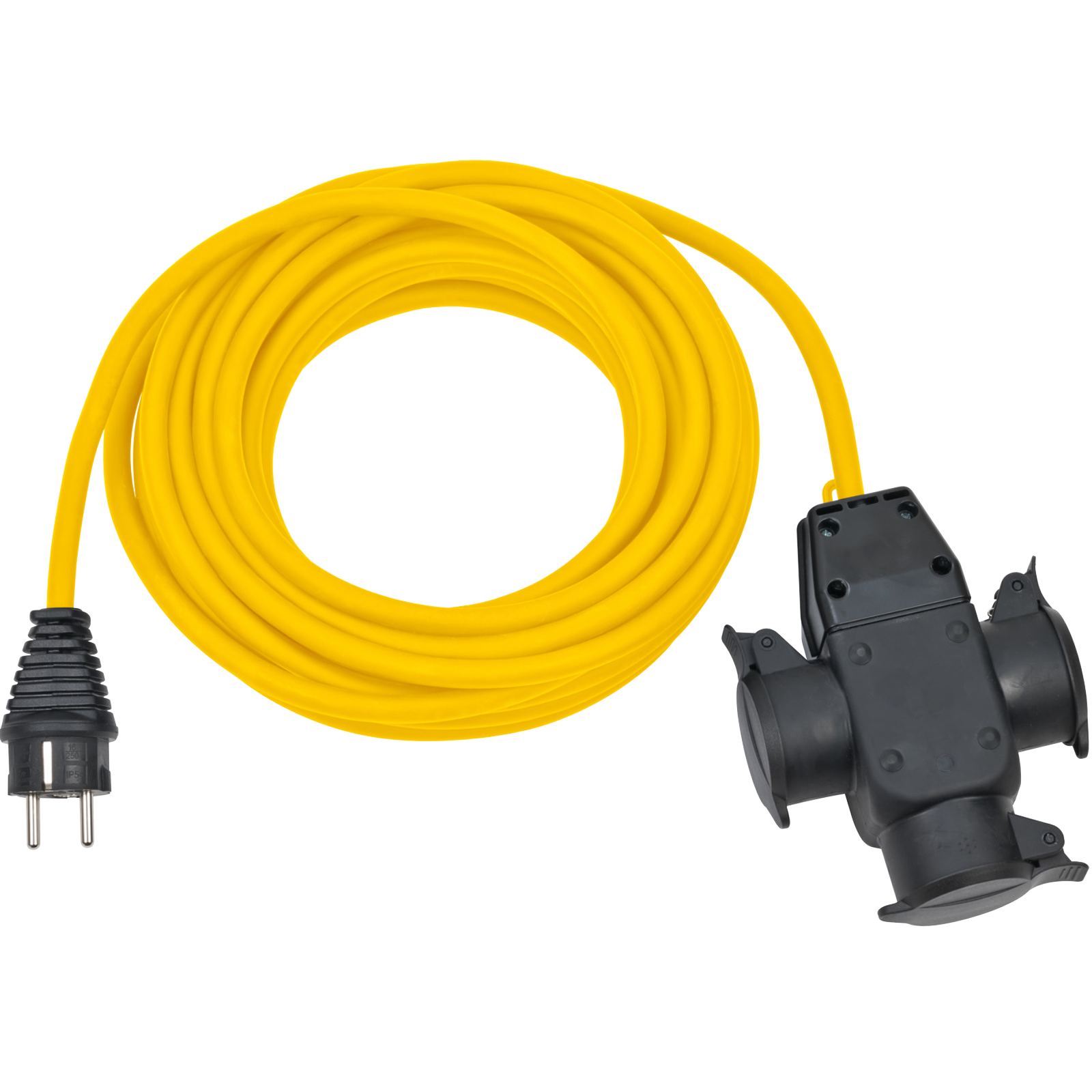 Das robuste Verlängerungskabel mit 3-fach Gummi-Kupplung ermöglicht den gleichzeitigen Betrieb mehrerer Geräte, wie z.B. Radio und Bohrmaschine.Dank der selbstschließenden Klappdeckel ist es besonders widerstandsfähig gegenüber hoher mechanischer Belastung und ideal für den Einsatz auf Baustellen, im Gewerbe und im privaten Bereich.Die integrierte Befestigungsvorrichtung sorgt für zusätzliche Flexibilität.Mit Schutzklasse IP 44 ist das Kabel fremdkörper- und spritzwassergeschützt und eignet sich sowohl für den Innen- als auch den Außenbereich.