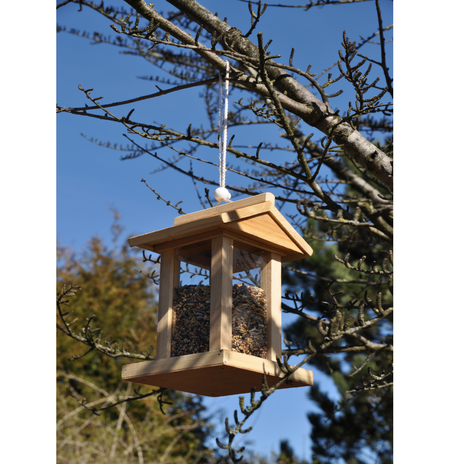 Vogelfutterhaus aus Holz mit Sichtfenster - Füttern und Beobachten in der NaturDieses stabile Vogelhaus aus Holz mit integriertem Sichtfenster ist ideal für alledie im Garten oder auf dem Balkon heimische Vögel füttern und beobachten wollen.Das transparente Fenster zeigt auf einen Blick, wie viel Vogelfutter noch vorhanden ist - praktisch und sauber zugleich.Aus wetterfestem Naturholz gefertigt, bietet das Vogelfutterhaus für Wildvögel Schutz vor Regen und Schnee.Dank der offenen Bauweise haben Meisen, Spatzen & Co. leichten Zugang zum Futter. Ideal für die Fütterung das ganze Jahr über.Abmessungen: 14,5 x 14,5 x 22 cm
