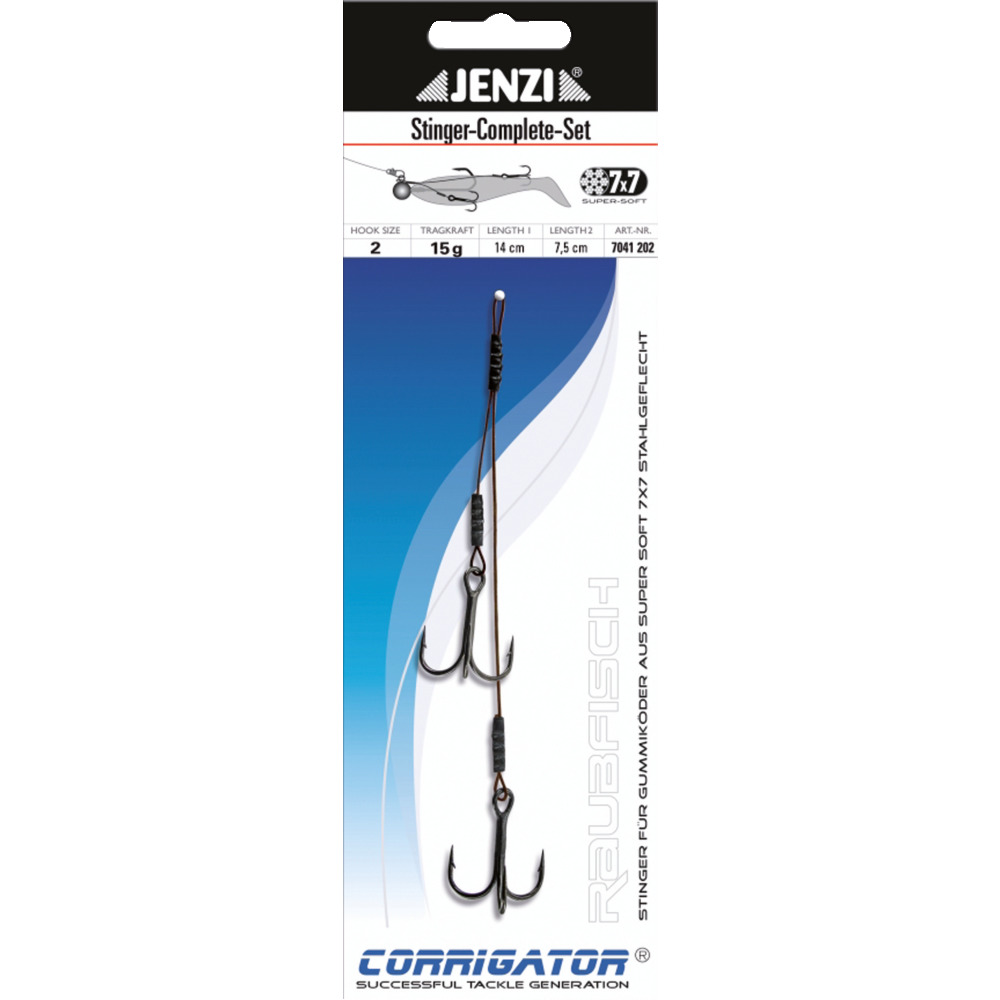Mit dem 7x7 Doppel-Stinger-Rig können Gummifische sowie Köderfische perfekt präpariert werden, um Fehlbisse zu vermeiden. Durch die unterschiedlich abgestimmten Längen kann immer ein Haken im Bauch- sowie ein Haken im Schwanzbereich fixiert werden. Material: 7x7 in brauner Farbe.