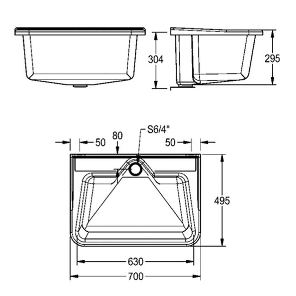 Der Waschtrog besteht aus glasfaserverstärktem Kunststoff, daher weitgehend schlag- sowie kratzfest und äußerst strapazierfähig. Komplett mit Standrohrventil 6/4“ und Aufhängung. Farbe grau